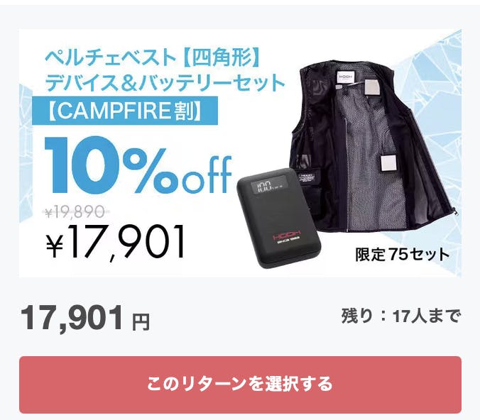▶︎ 着る扇風機【ミドルファン】 のプロジェクトも、同じく残り2日!