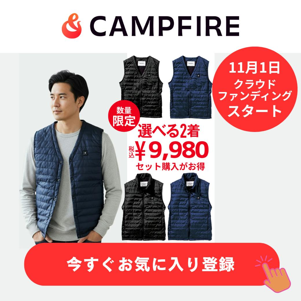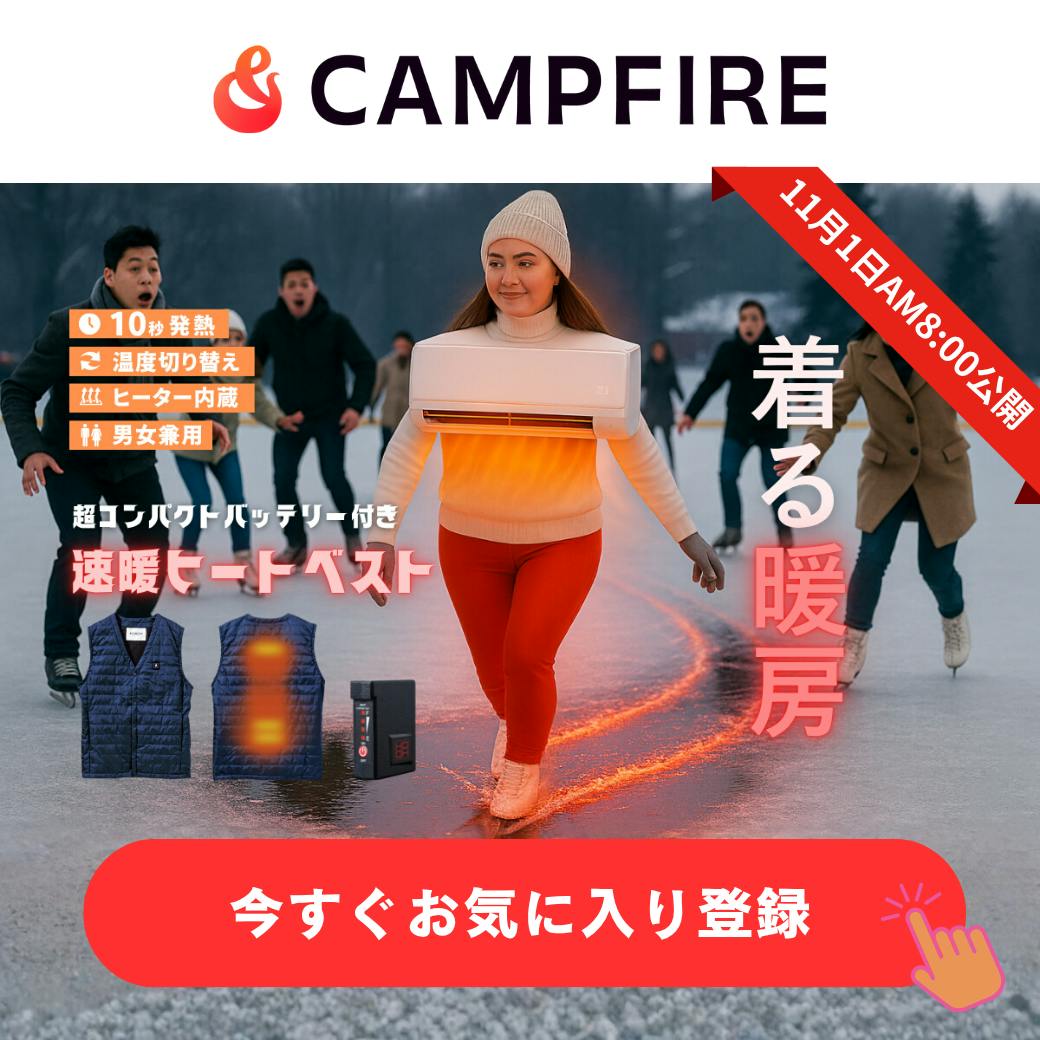 この機会にぜひ、超スモールバッテリー付ヒートベストで「着た瞬間、冬が変わる!」体験をご支援ください。