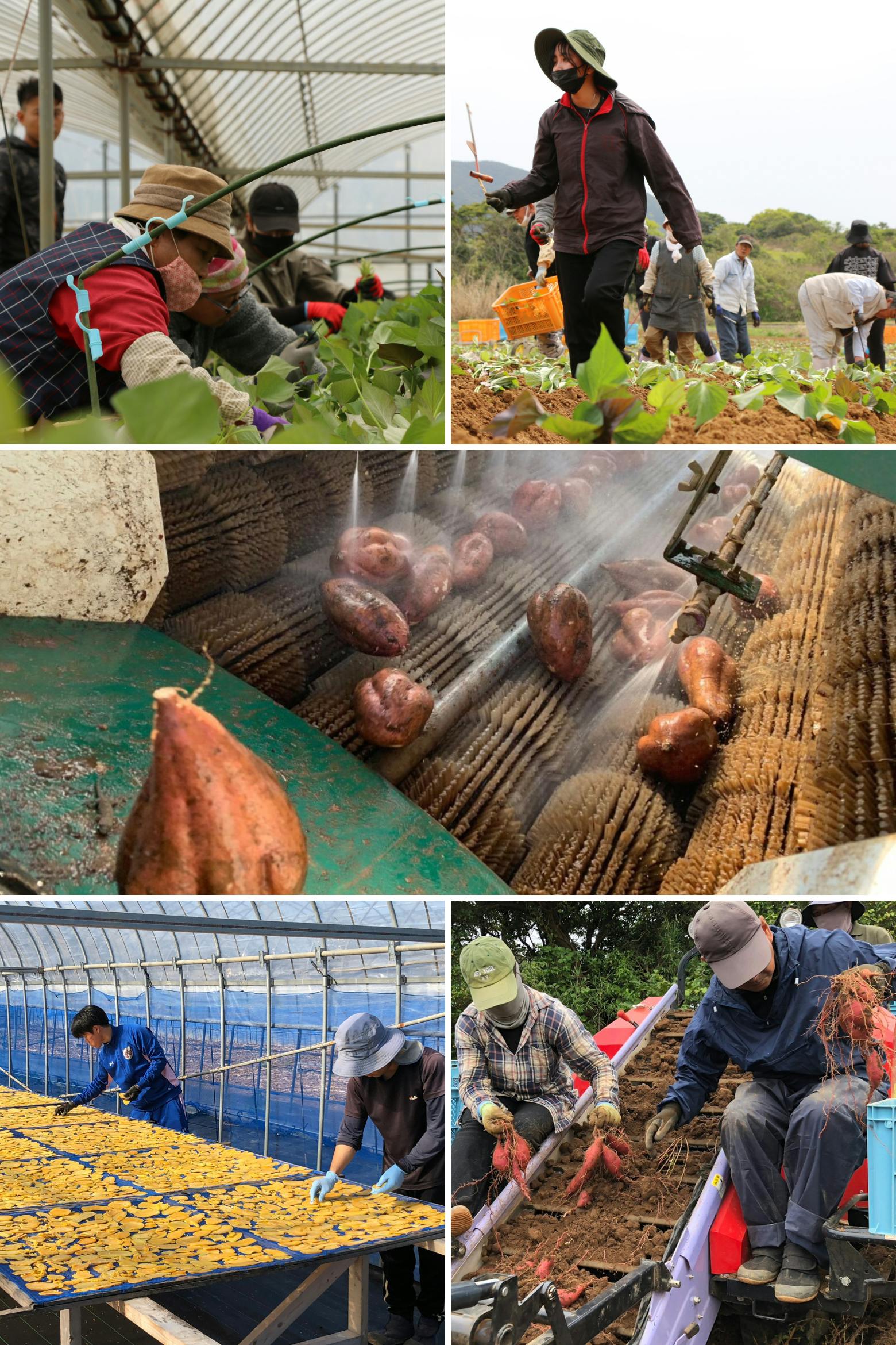 これがキッカケとなり、生産品目もさつまいもに絞ることとなり、徐々に事業も軌道に乗っていきました。2013年には農産物直売所「旬の駅」、2019年には食品工場と輸出商社を設立、収穫量も増え、雇用できる従業員数も増加させることができました。