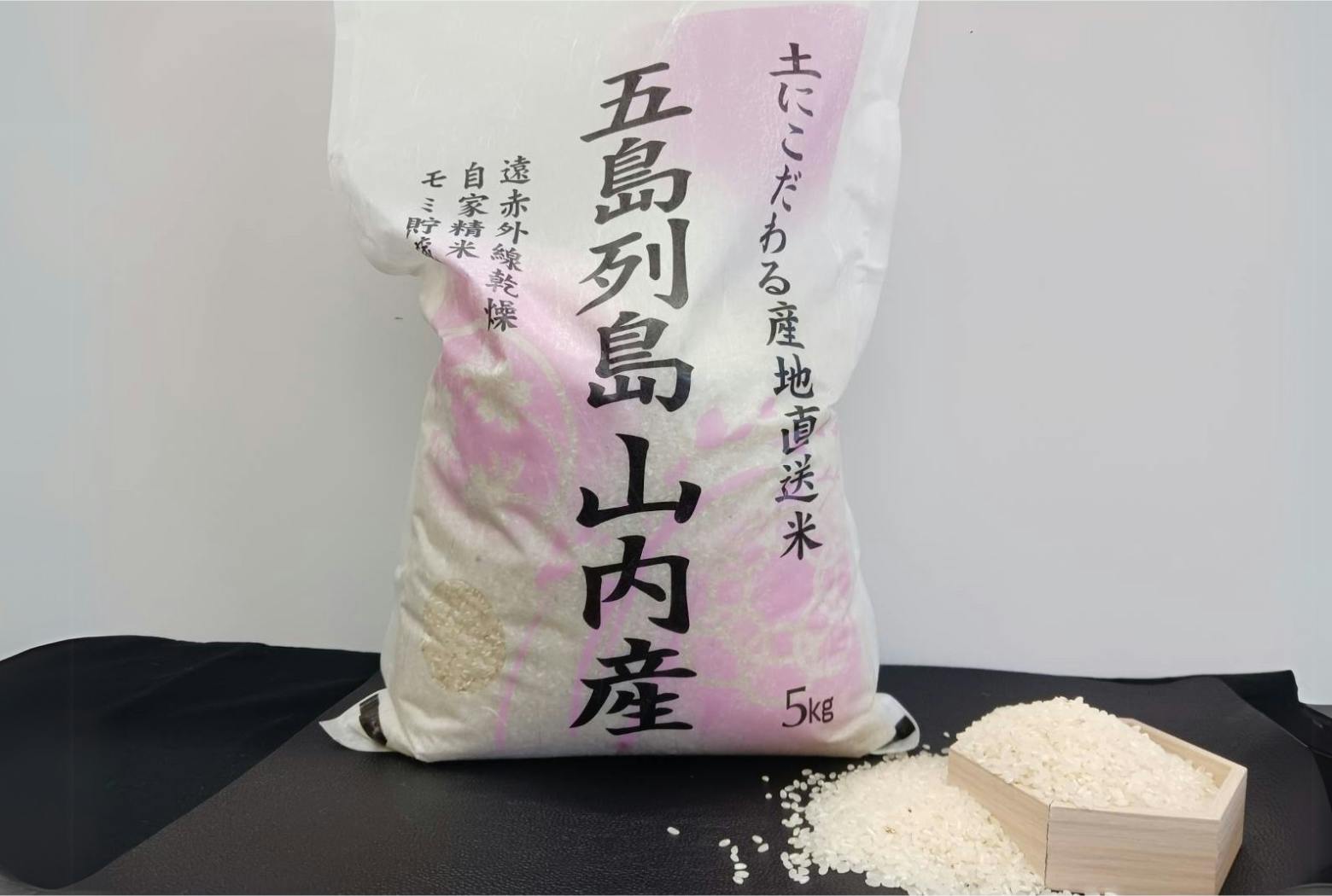 五島列島・福江島の中央に広がる山内(やまうち)盆地は、寒暖差が大きく、清らかな水に恵まれた土地です。この自然環境のもと、じっくりと育まれたお米は、ふっくらとした炊き上がりと、噛むほどに広がる甘みが特徴です。