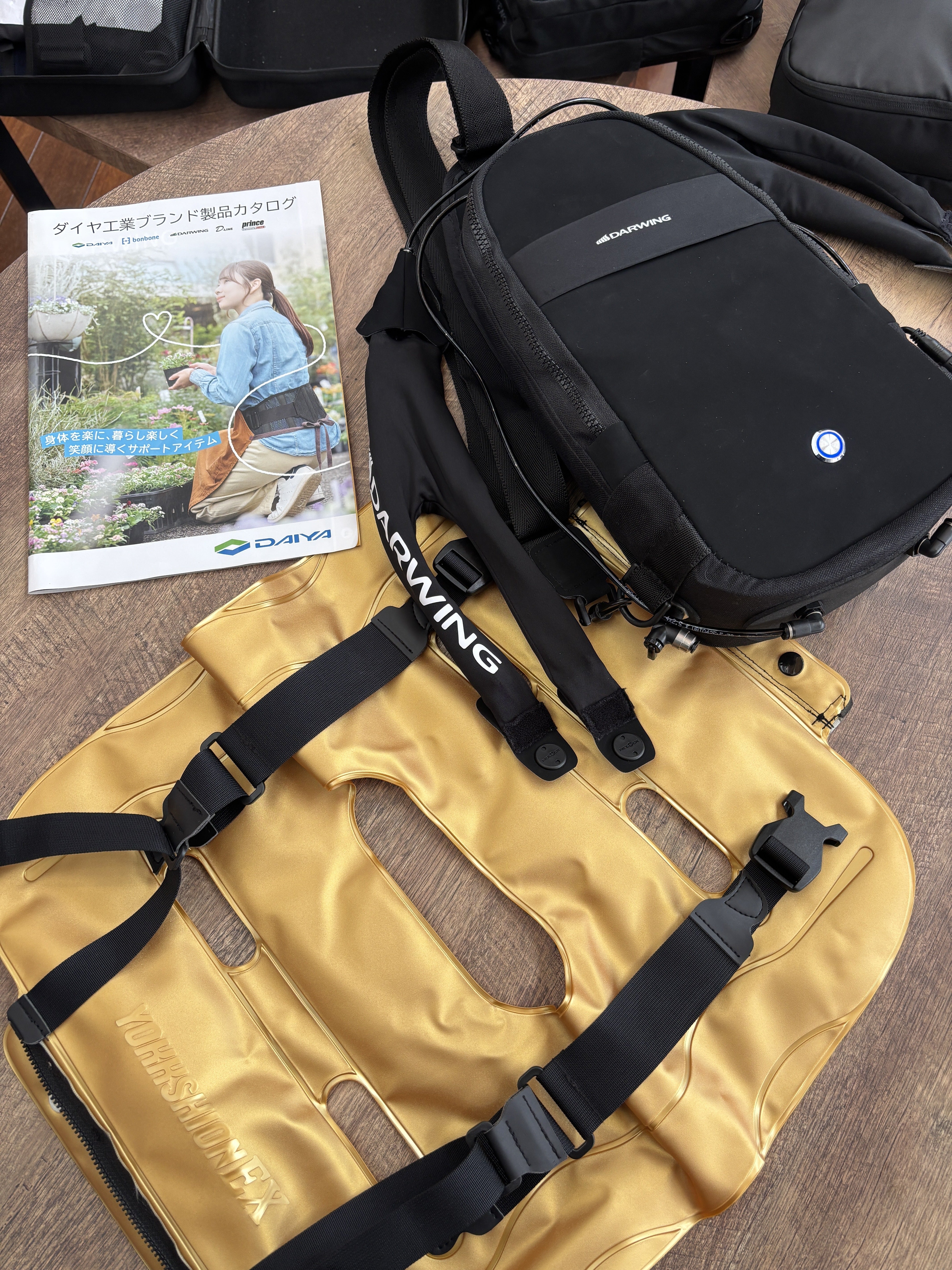 また、この日は岡山県の補助器具を製作してくれるダイヤ工業様との初めての面談の日でもあった。営業・企画担当の吉岡さんと開発担当の大野さん。二人とも若い方たちで非常に好印象であった。右膝を守るサポーターを持ってきてくださり、さっそく次女に装着してみた。