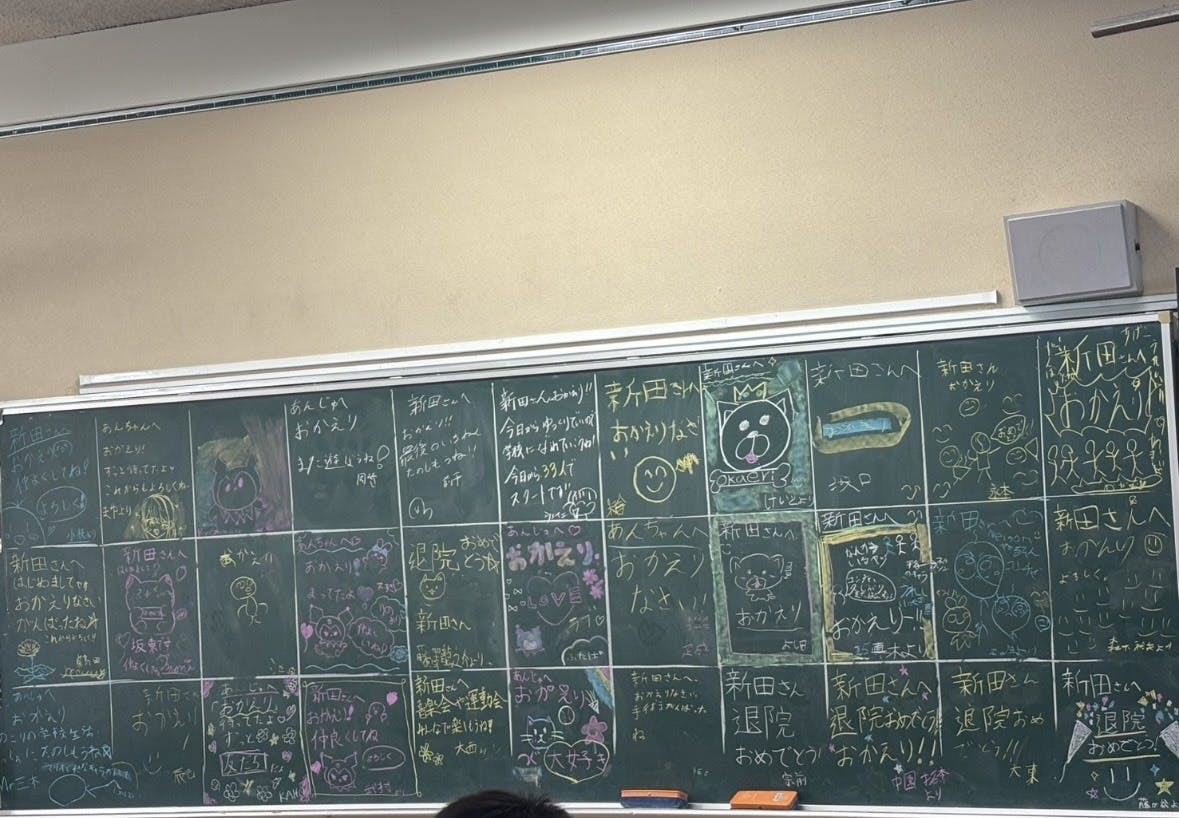 教室に入ると黒板びっしりにメッセージもかかれていた