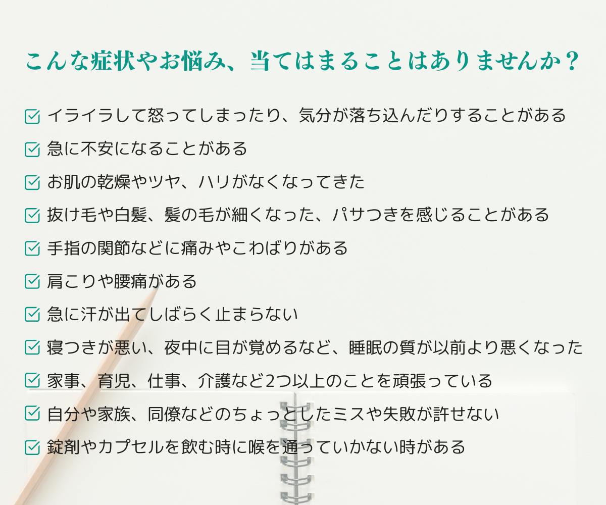 上のリストで2つ以上あてはまったら、それって更年期症状かも・・・