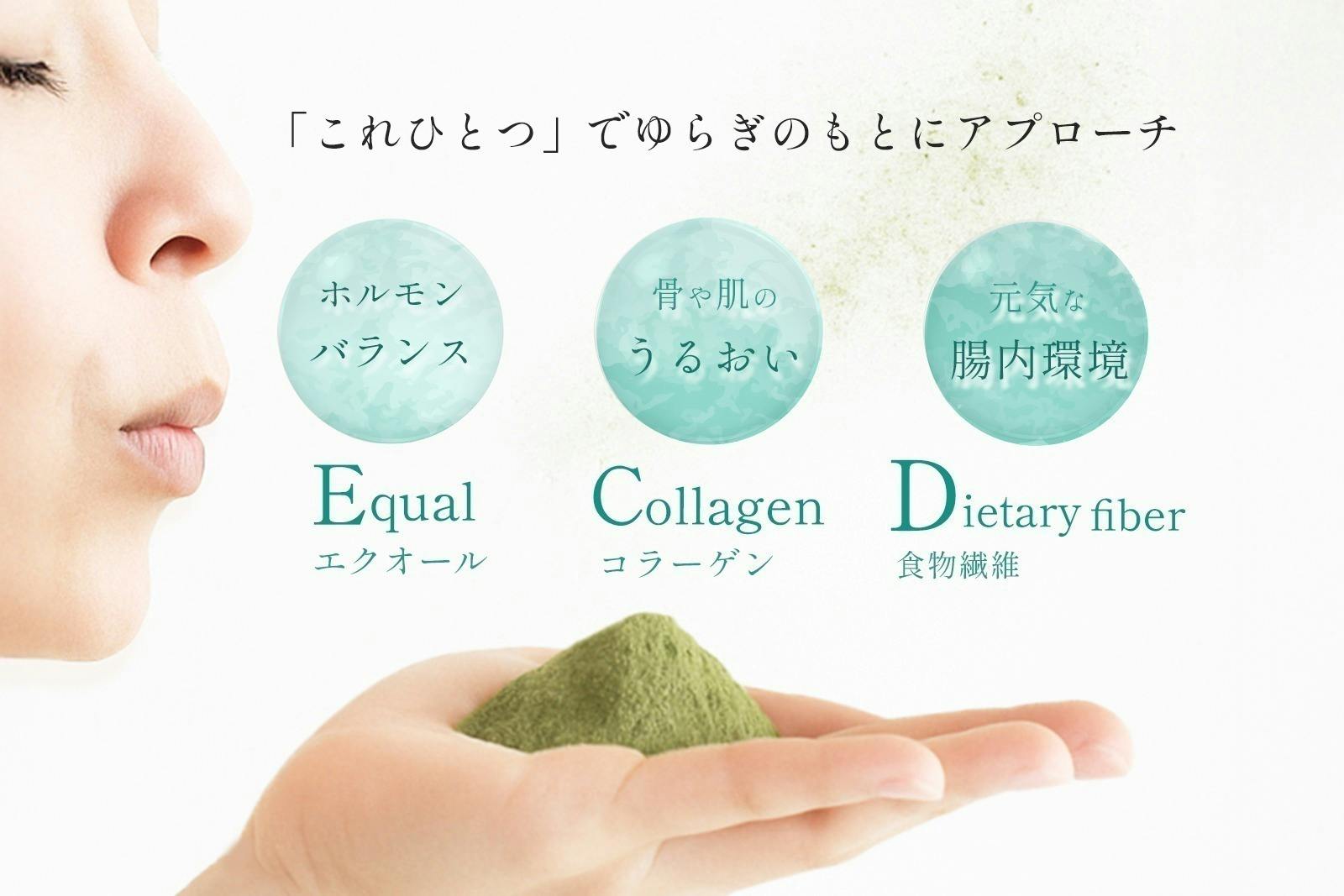 エクオールとコラーゲン、そして大麦若葉に含まれる食物繊維の3つの相乗「ECD設計」で、ゆらぎのリズムを整えます。