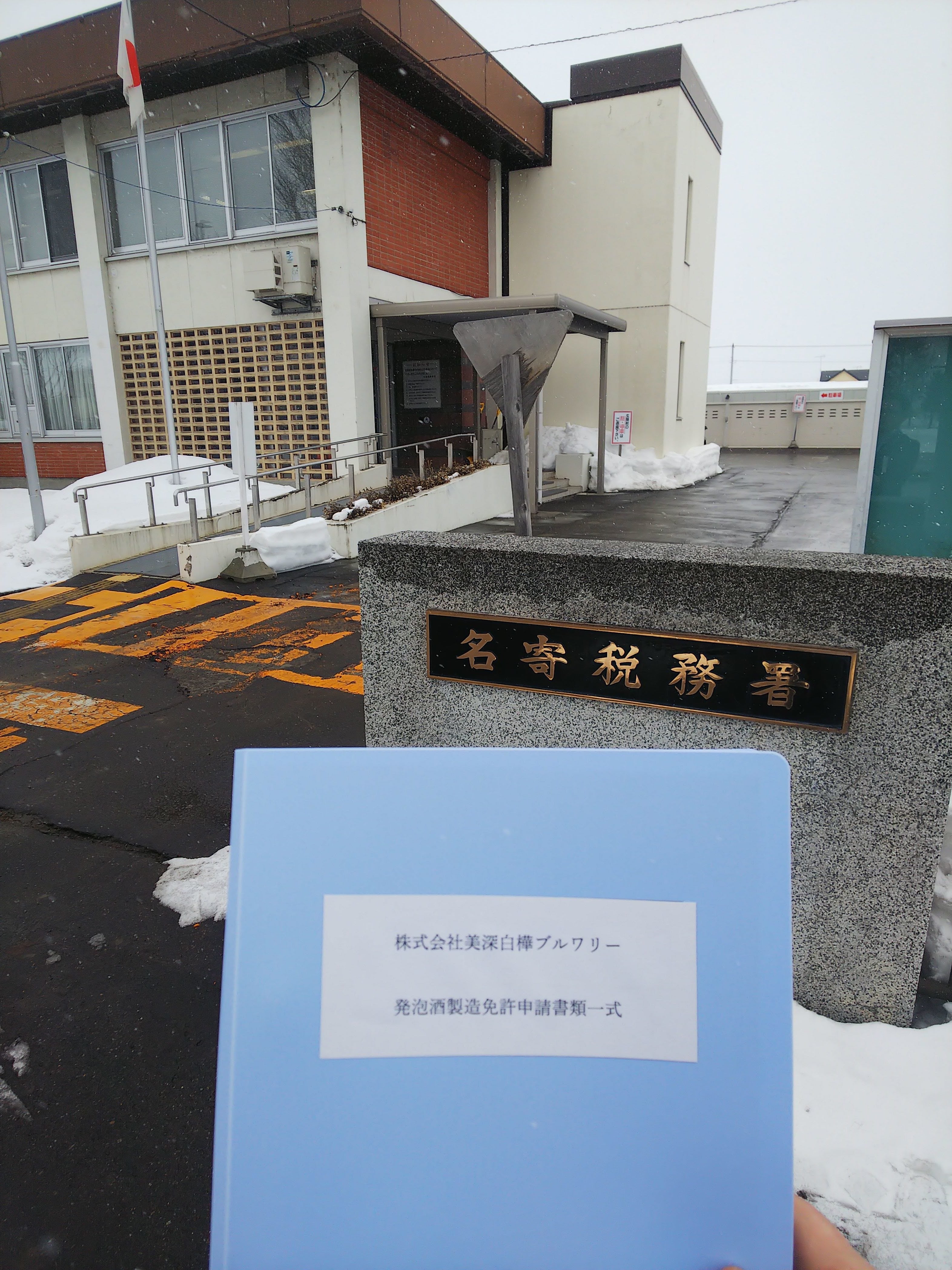 やっと今日、名寄税務署に行き、醸造免許の申請ができました!