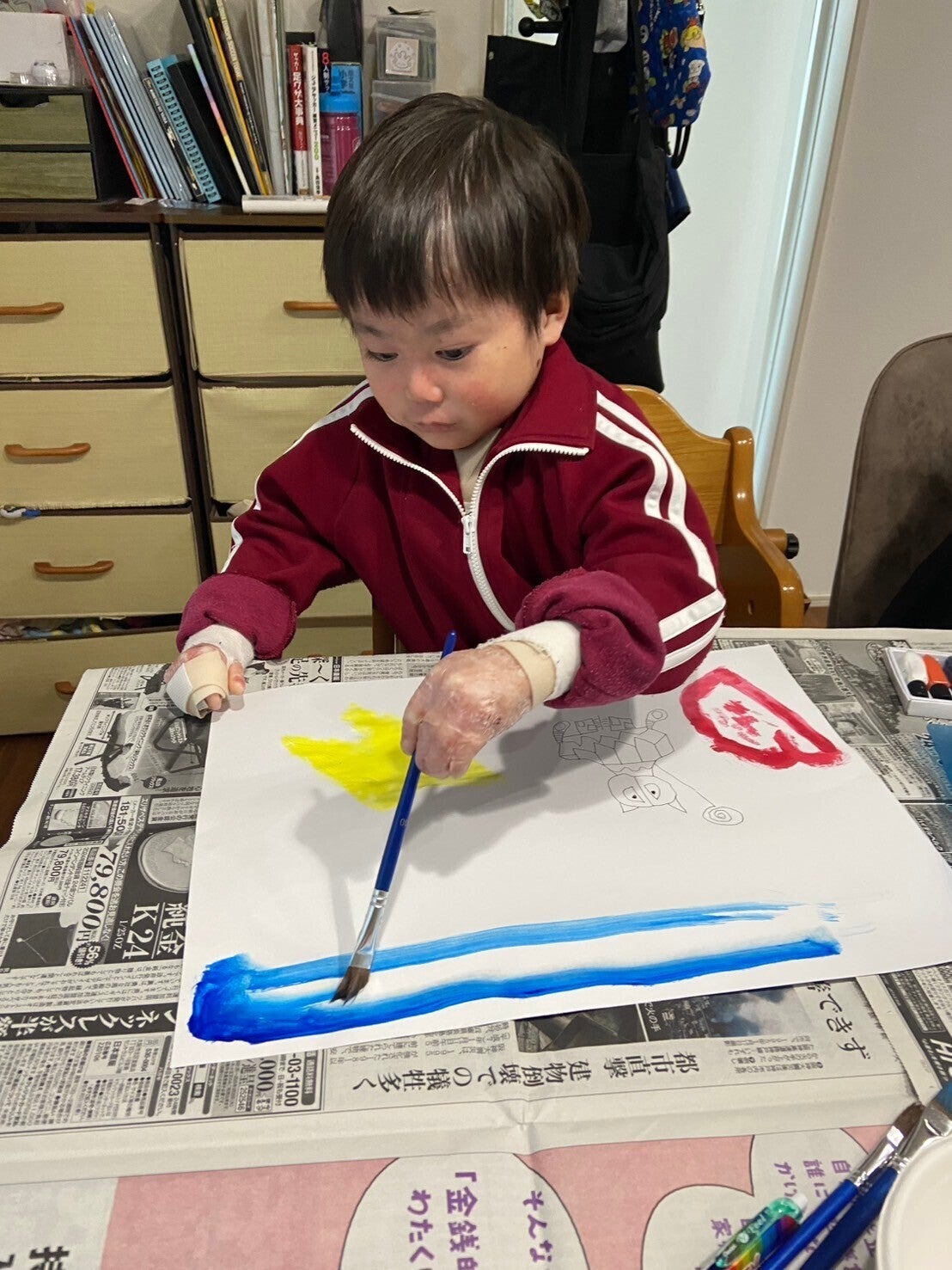 ※表皮水疱症患者の子どもたちに、絵の具やクレヨン、スポンジや毛糸などいろいろな道具を使って、1枚の絵を描いてもらいました。