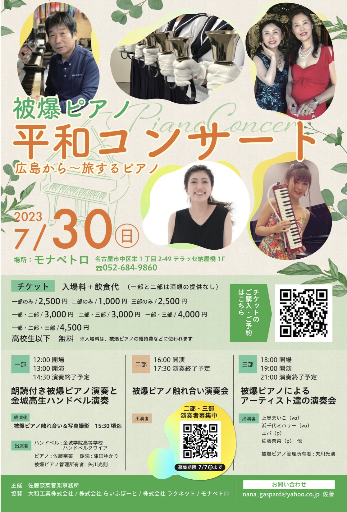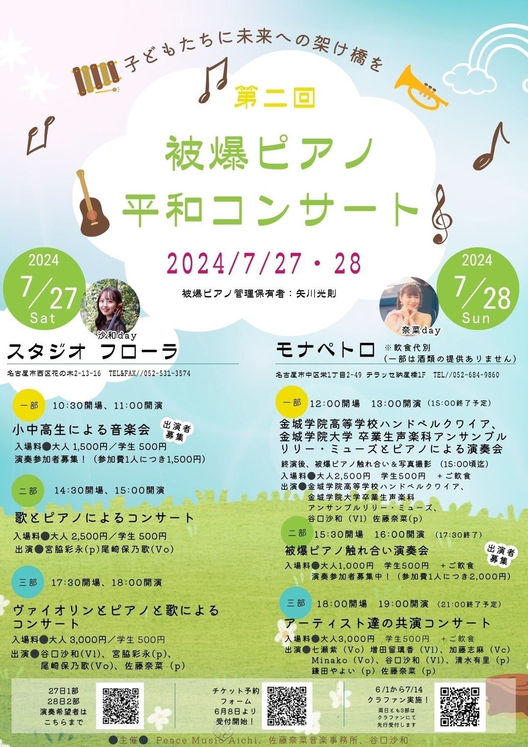 主催 Peace Music Aichi、佐藤奈菜音楽事務所、沙和