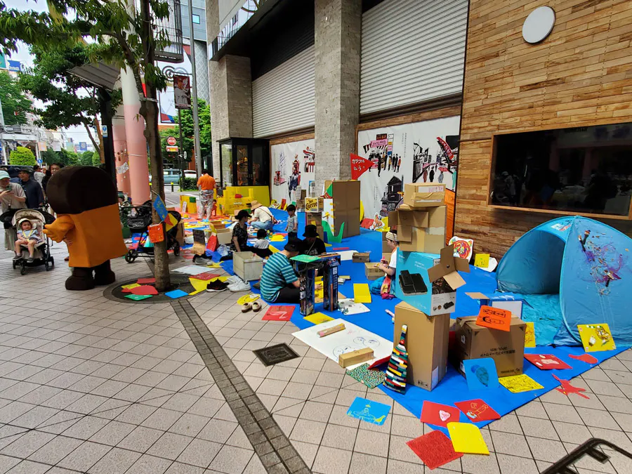 ぶらんど〜む一番町にて毎年恒例のどんどこ市2025を開催しました。アートワークショップの様子。