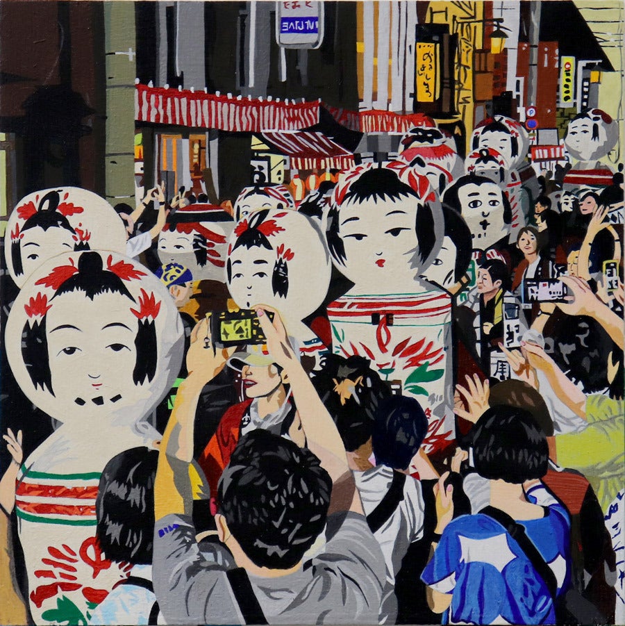 昨年アート・インクルージョンがAとWにディレクションをお願いして制作した七夕飾りをモチーフに描かれたこの作品を眺めると、夏の日差しでたなびくカラフルな吹き流しがキラキラと輝いていた、大変だったけど忘れられない去年の七夕の思い出がここに閉じ込められている様に思えて、これは大切な1枚だと感じました。
