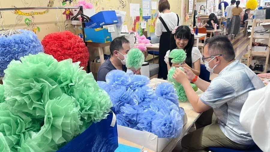 ✅ 薬玉に使うお花紙の作業が始まりました!