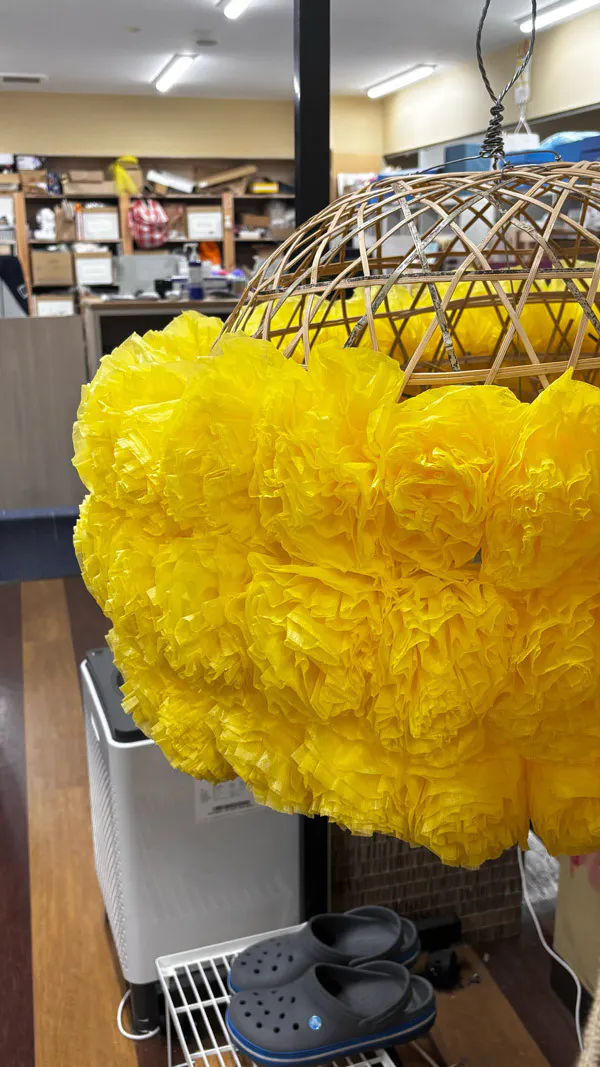 昨年はとにかくお花を開くので精一杯でしたが、今年は鳴海屋さんから七夕飾りにおける美しいお花の開き方を伝授してもらったので、それをスタッフたちにも伝えて1個1個形を見ながら進めています。