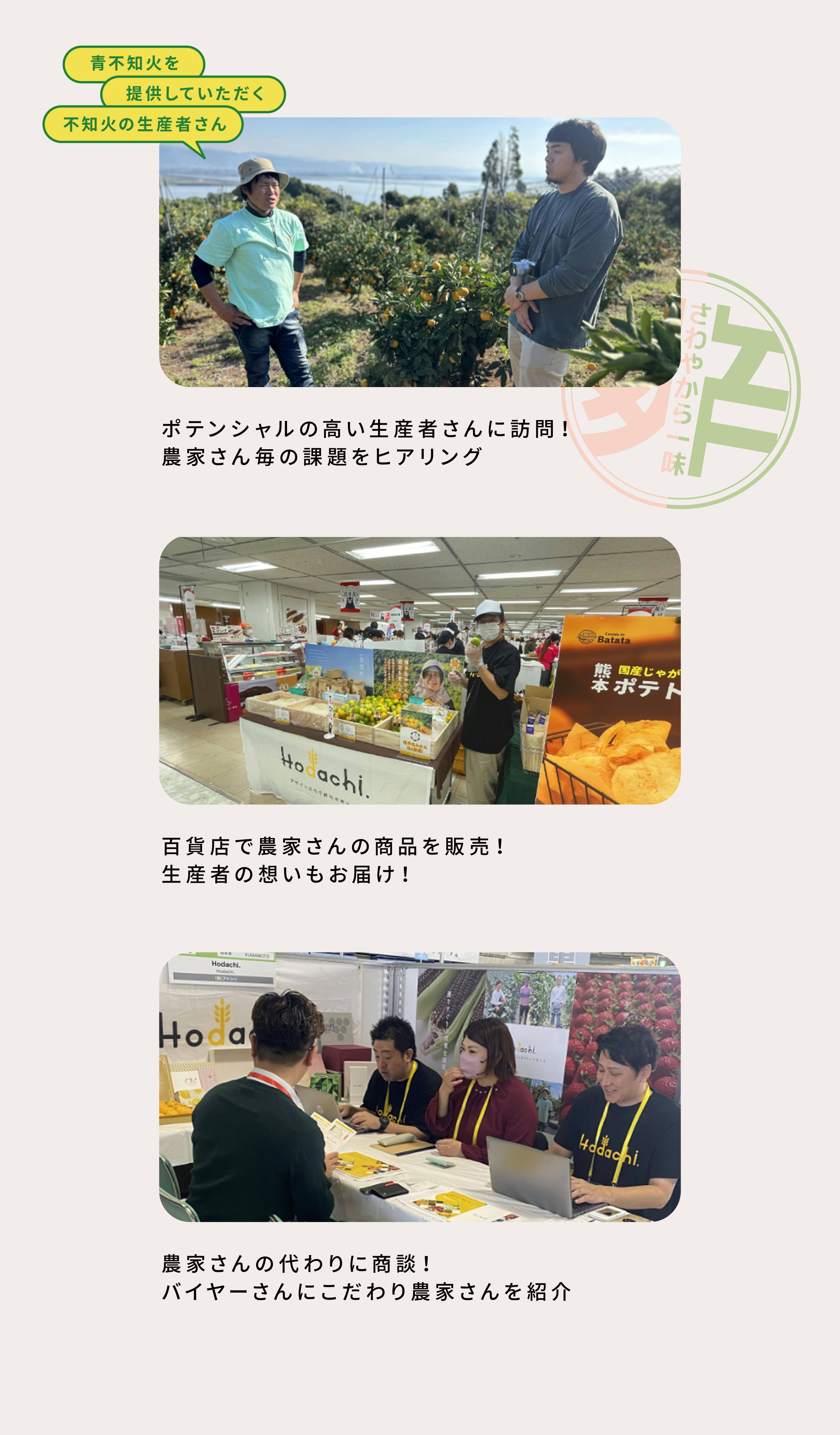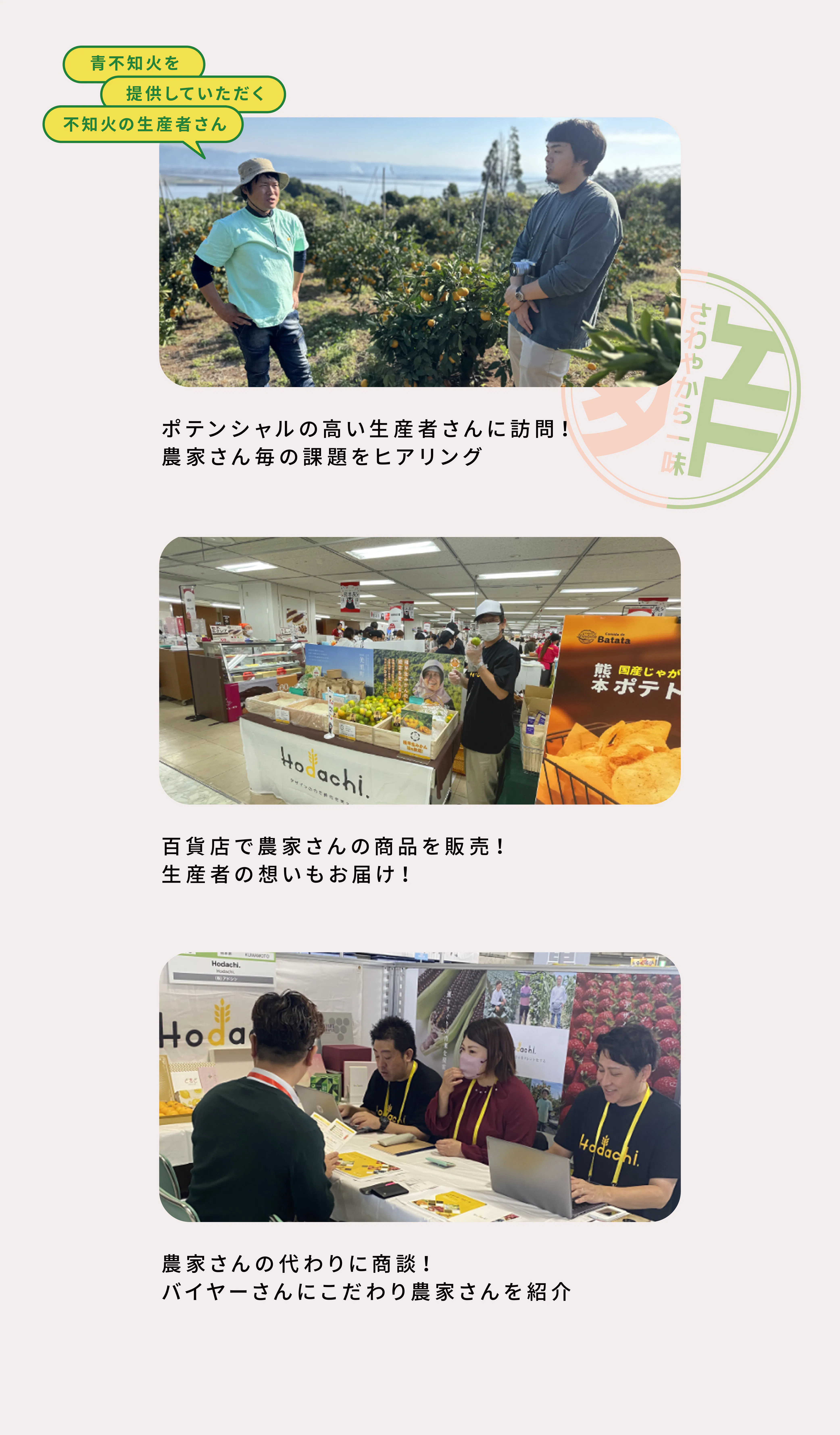 実は弊社の中に農業支援事業部という事業部が約2年前から発足しており、「Hodachi.」というプロジェクトで熊本県のポテンシャルの高い一次生産者さん方と関わらせて頂いております。