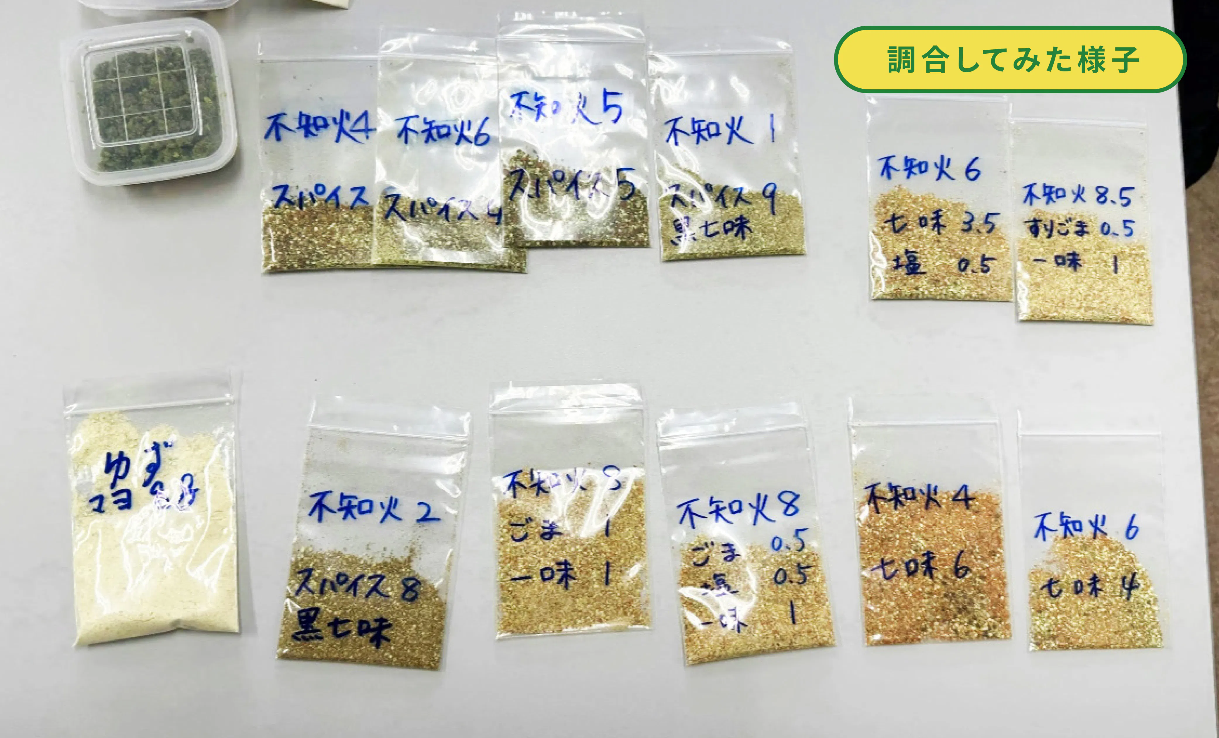 当初は「不知火胡椒」を考案しましたが、試作を重ねる中で、不知火の爽やかな風味を最大限に活かすには、練り物よりも一味唐辛子が最適だと判断しました。