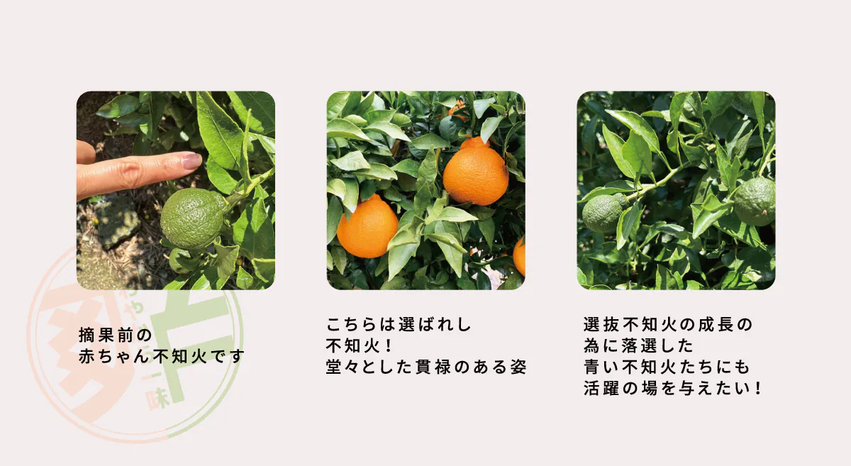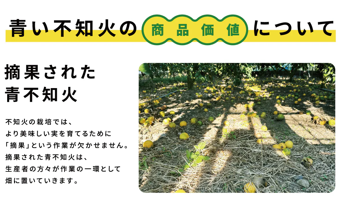 選ばれし不知火だけでなく、摘果された青不知火にも光を当て、全国へ魅力を発信します。