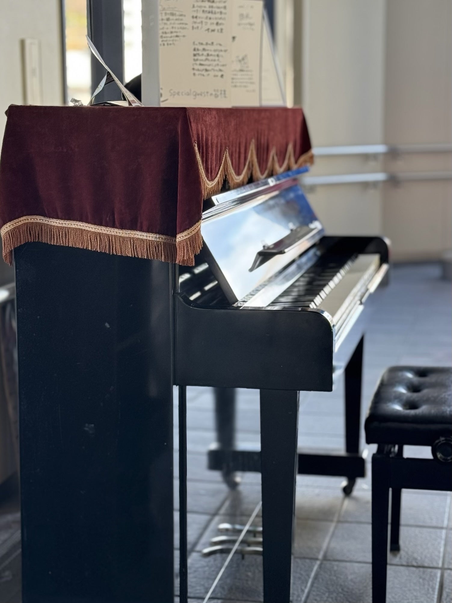 半屋外という立地は、湿度や温度の影響を大きく受けるため、ピアノにとって決してやさしい場所ではありません。