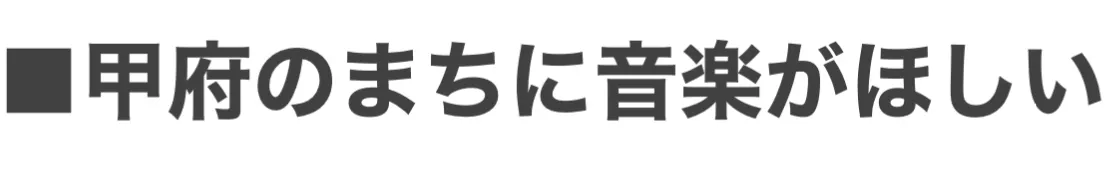 そして、これは別に山梨に限った話ではないですが、社会全体の流れとして、特に若い人を中心に幸福度が低い傾向にあるが、そんな中でも、幸福度を上げるためのひとつの要素に十分になり得るものとして、甲府のまちの中に日常的に「音楽」が聞ける場所がないのはすごくもったいないと思っています。
