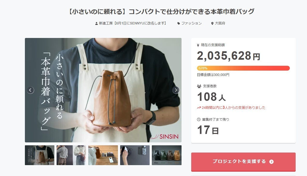 ▼『本革巾着バッグ「ボアーチ」』のプロジェクトページはこちら