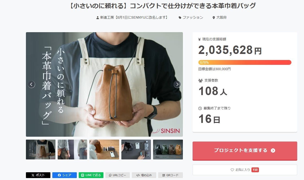 ▼『本革巾着バッグ「ボアーチ」』のプロジェクトページはこちら
