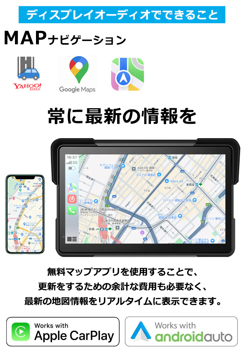 本製品なら、普段使い慣れた地図アプリをそのまま使用できるので、余計な更新費用は不要。常に最新の地図情報で、快適なドライブをサポートします!