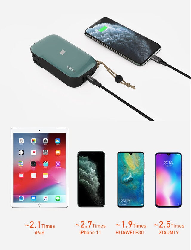 一日の行動に十分な容量を内蔵しています。スマートフォン、タブレット、Ninendo Switch, ドローン等のチャージが可能です。
