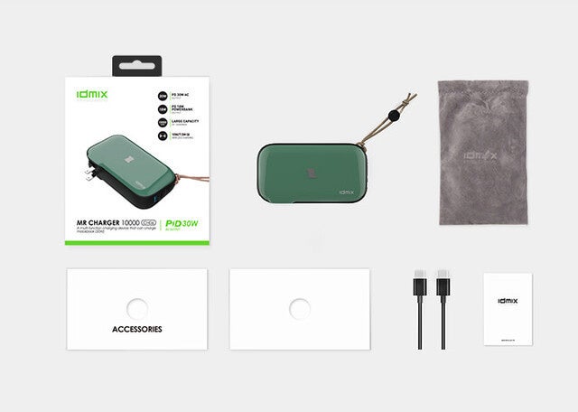 A.Mr Charger本体以外に、専用ソフトポーチ、Type-Cケーブル、日本語説明書が付属します。