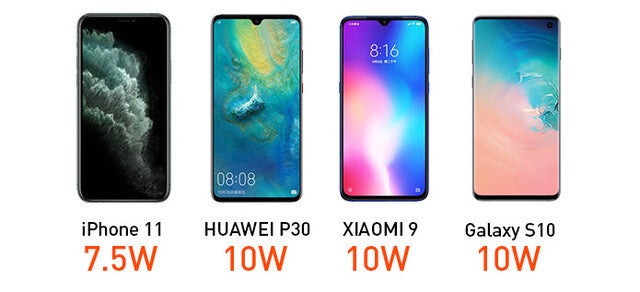 10W/7.5W/5Wに対応。iPhone機は7.5W、アンドロイド機は10Wに対応します