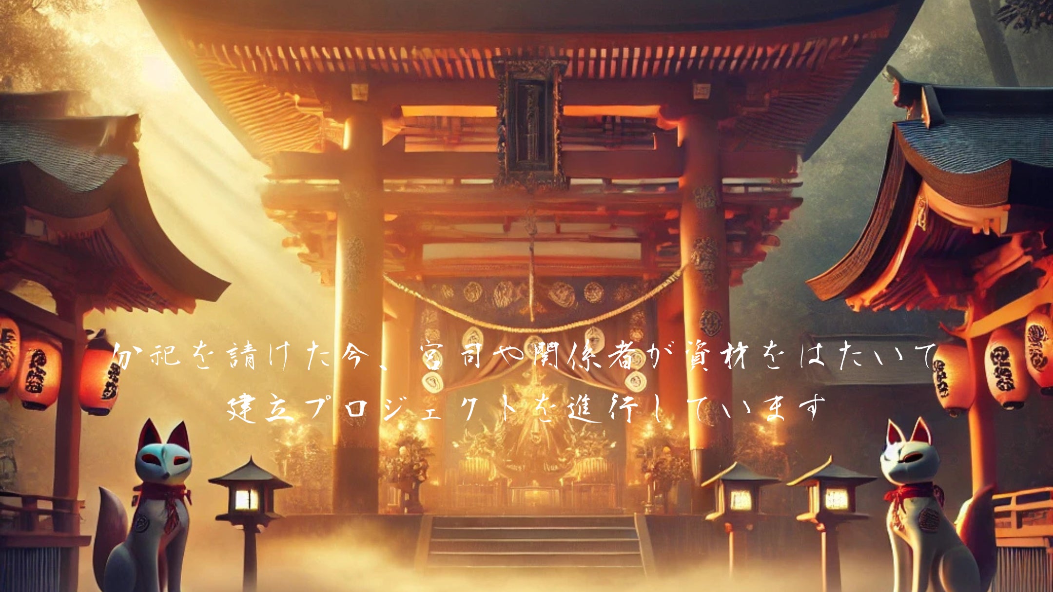 1️⃣ 神社建立の準備 - 京都伏見稲荷大社の正式な分祀として、拝殿建立に向けた計画を進行中 - 神事を適切に執り行うための施設整備を検討