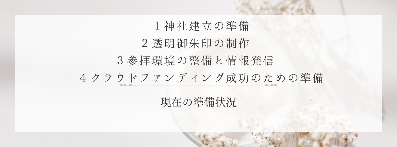 このクラウドファンディングを通じて、神社建立に向けた第一歩を踏み出したいと考えています。皆様のご支援が、新たな参拝の場を創る大きな力となります。