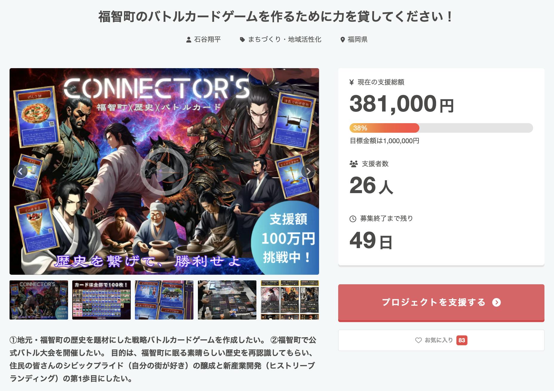 CONNECTOR’Sクラウドファンディング、4日目が終了しました!これまでに26名の方からご支援をいただき、支援総額は381,000円(達成率38.1%)となりました!