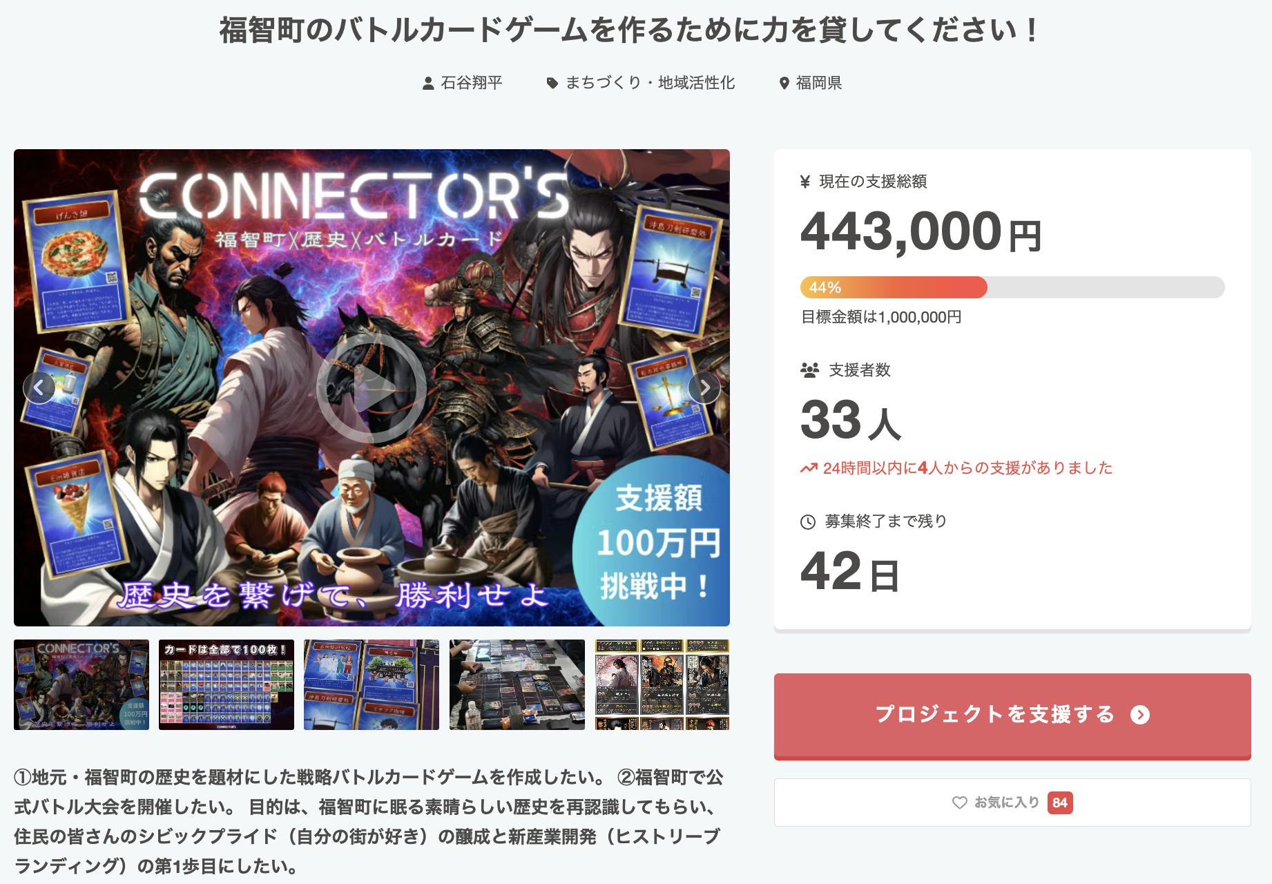 本日、クラウドファンディング11日目が終了しました。支援者は累計33名、支援総額は443,000円(達成率44.3%)となりました。