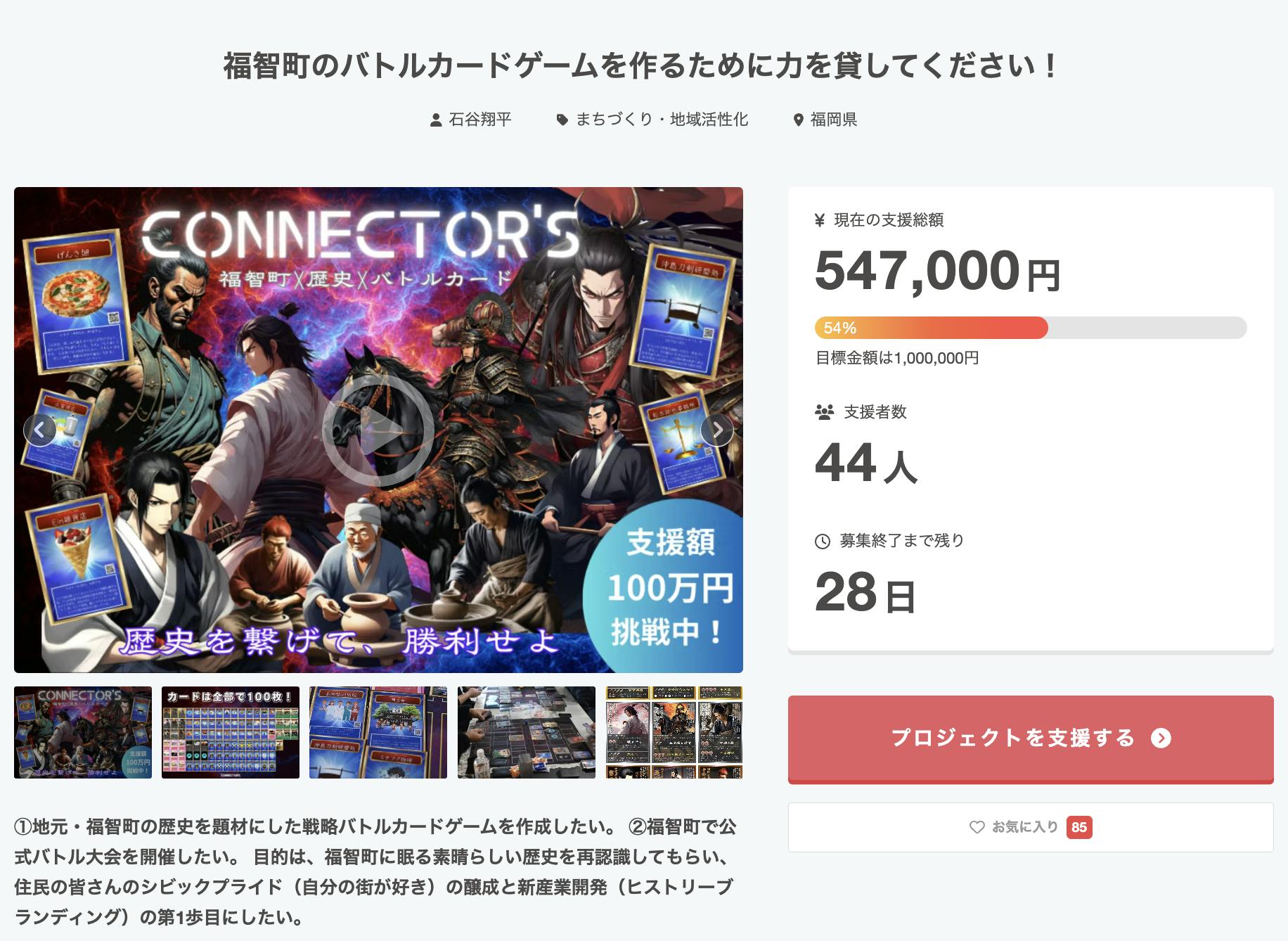 このプロジェクトは、ただのカードゲーム制作ではありません。福智町の未来、子どもたちの笑顔、大人たちの誇り、それら全てをつなげる“挑戦”です。だからこそ、ここから巻き返す。皆さんからいただいた期待と信頼に、絶対に応えてみせます。