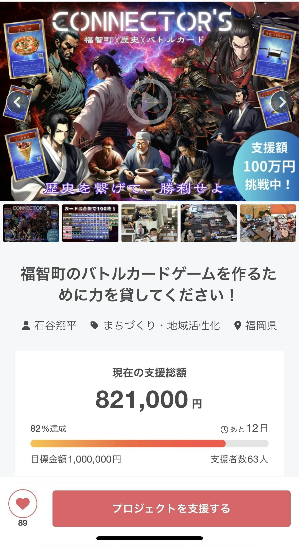 【クラファン残り12日|支援者63名|達成率82.1%】