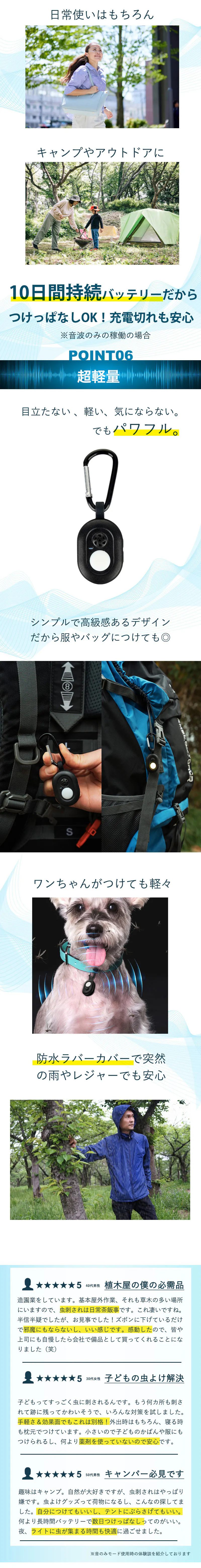 株式会社イーストメディカルは、創業18年を迎えます。この18年の間に様々な変化に対応し、揺るがない信念と高い品質を保持しながら成長を続けて参りました。商品にこだわり全国から健康雑貨・便利雑貨等を仕入れています。薬剤を使わず安全に虫対策が出来る製品を目指し、様々な専門家の意見を聞きながらこの商品を販売する事に至りました。この度販売する商品で、実感して頂きたいと思います。最後に私たちはMOSQUITO REPELLENT2を制作するために、製造工場とデザイナー、弊社の3社が一丸となりプロジェクトを誠心誠意進めています。 本文中に記載させていただいたスケジュールは、あくまでプロジェクト公開時点の予定です。 ご支援の性質上、ご支援の数が想定を上回った場合、製造工程上の都合や、配送作業に伴う止むを得ない事情によりお届けが遅れる場合がございます。 ・仕様、デザイン等、一部変更になる場合がございます。 あらかじめご了承下さい。 ※本プロジェクトを通して想定を上回る皆様からご支援頂き、現在進めている環境から量産体制を更に整えることができた場合、正規販売価格が販売予定価格より下がる可能性もございます。 ※原則として、配送遅延に伴うご支援のキャンセルはできませんが、リターン配送予定月から3ヵ月を超えた場合には、希望者に限りキャンセルにて対応させていただきます。 本製品を手に取った皆様に喜んでいただけるよう、弊社スタッフ一同、心を込めてご対応いたしますので、ご支援くださいますよう宜しくお願い申し上げます。