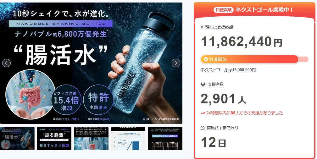 『NANOBULEシェイキングボトル』が、支援総額【1100万円】を突破いたしました!!