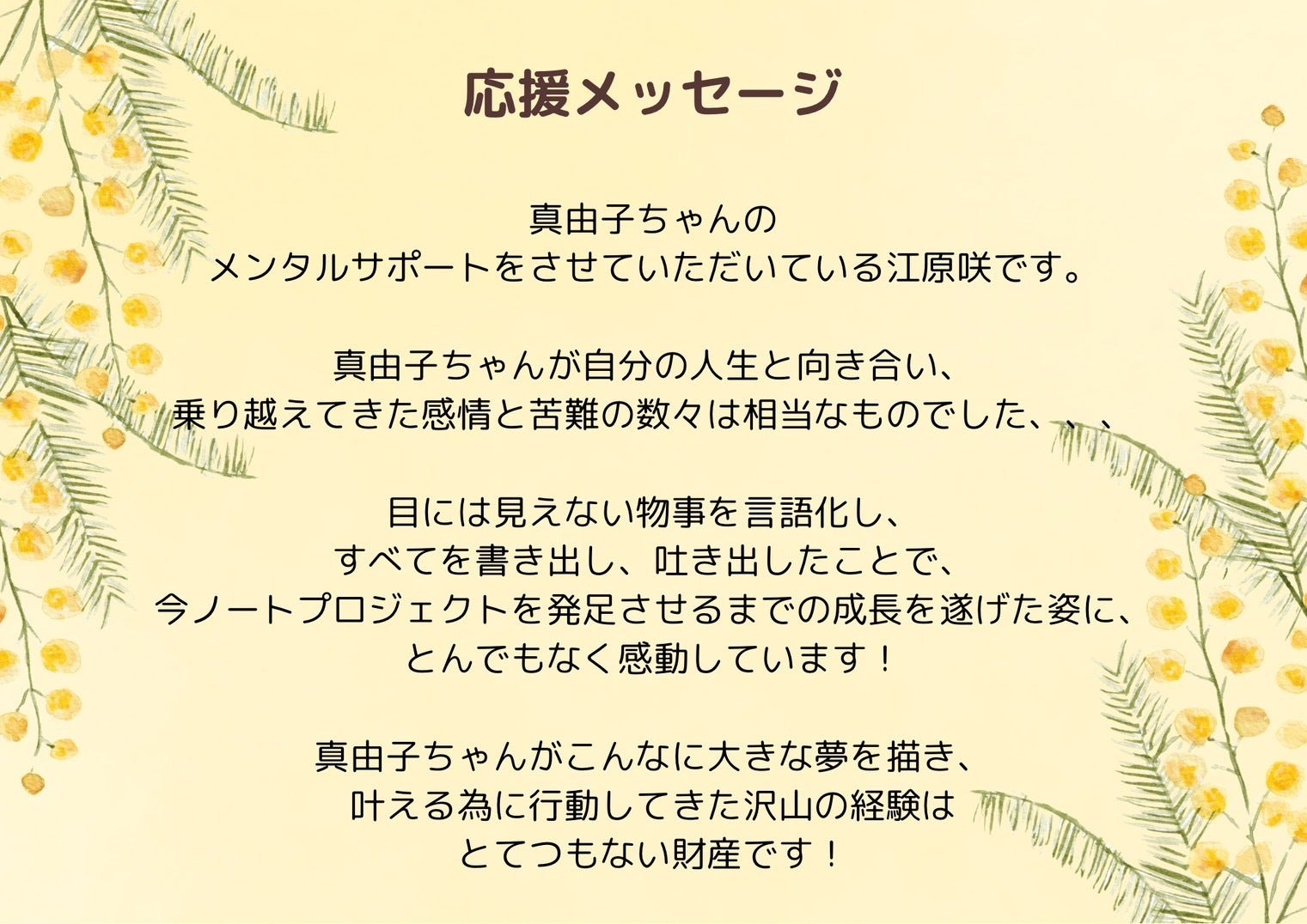 最後まで読んでいただき、私の想いを受け取ってくださって、ありがとうございました。