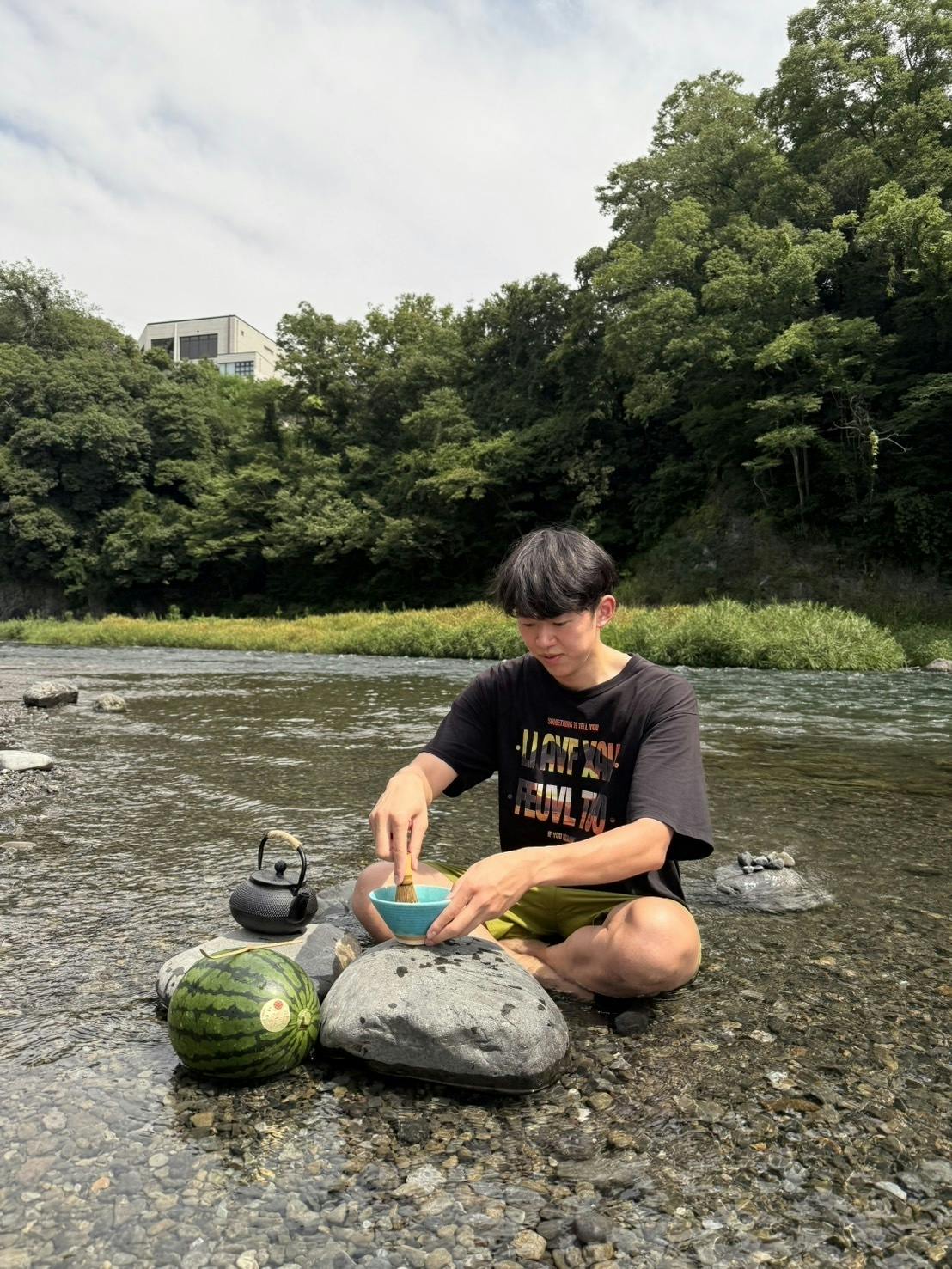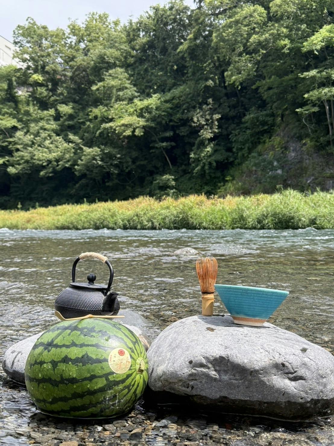 そんな葛藤を胸に、私は先日、青梅の川の中で一杯の抹茶を点てました。