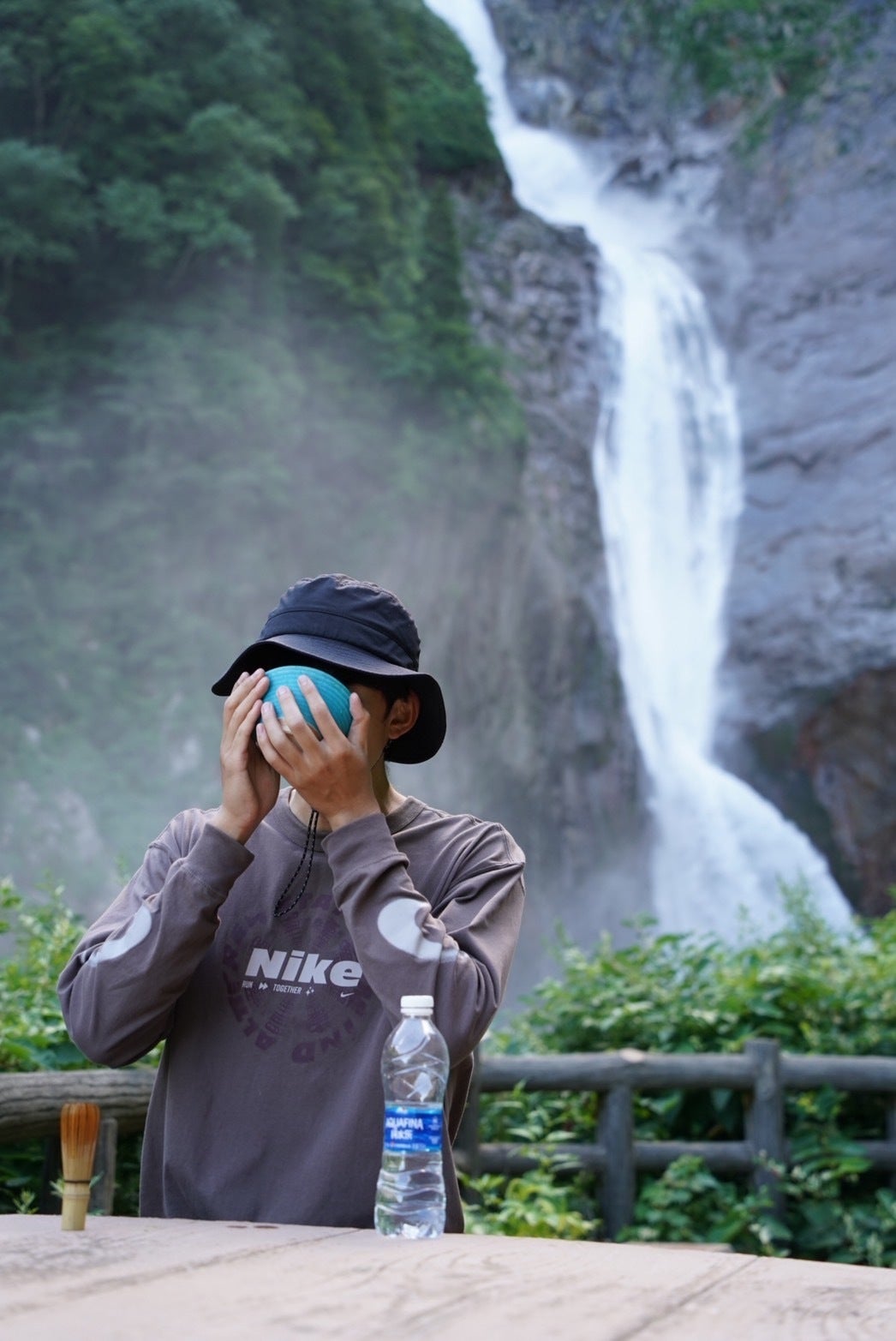 「こんなところでお抹茶!?」と思うような場所ですが、滝の風圧が離れた場所にいても届き、その迫力に“日本一”を実感しました。
