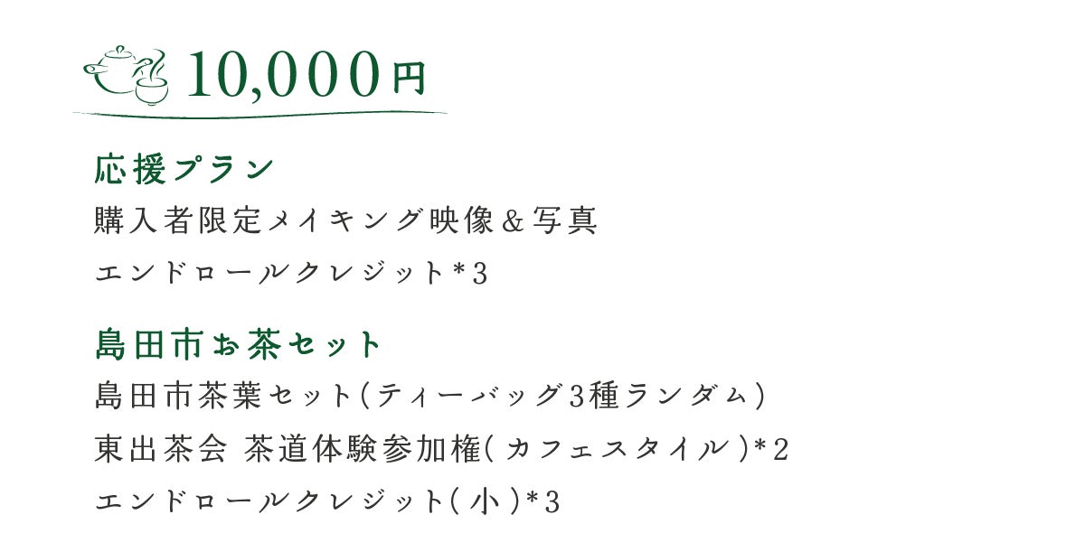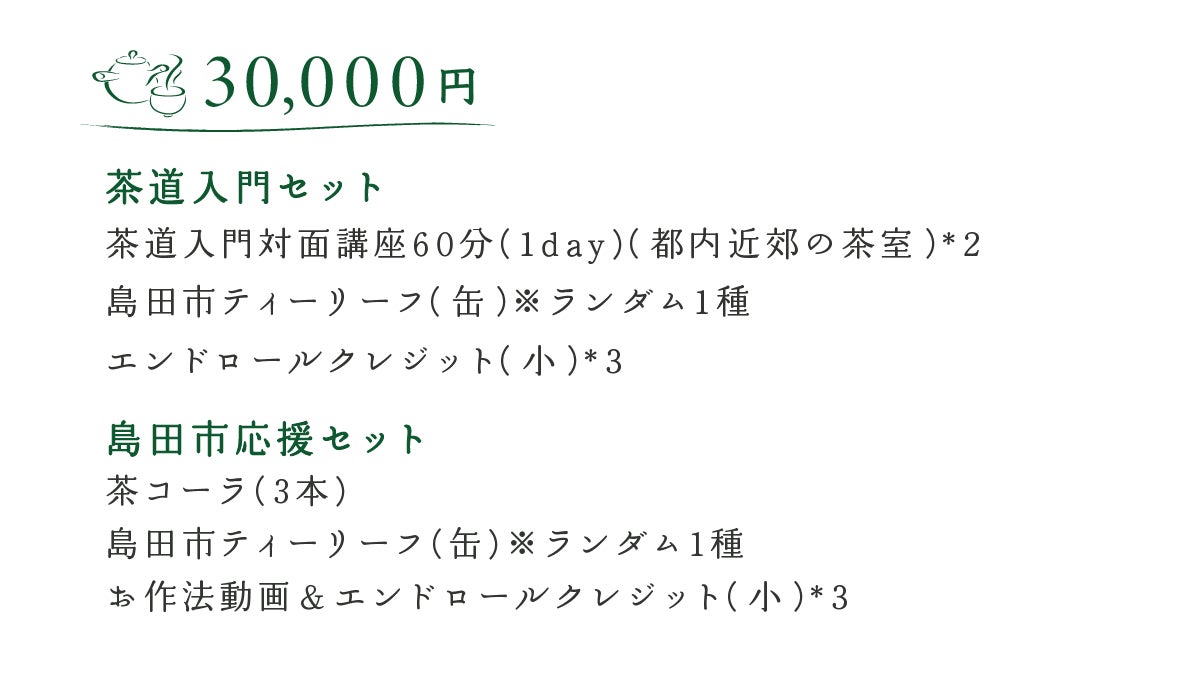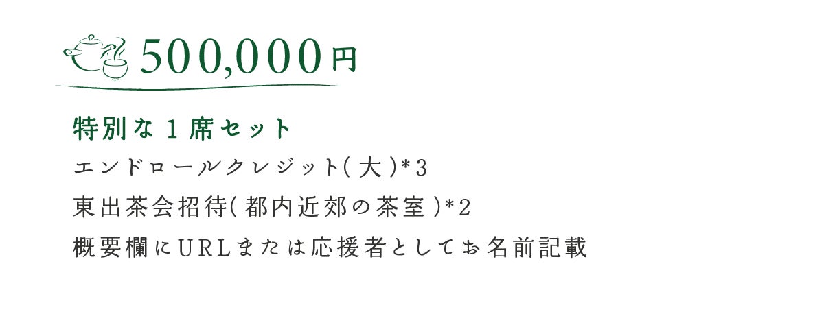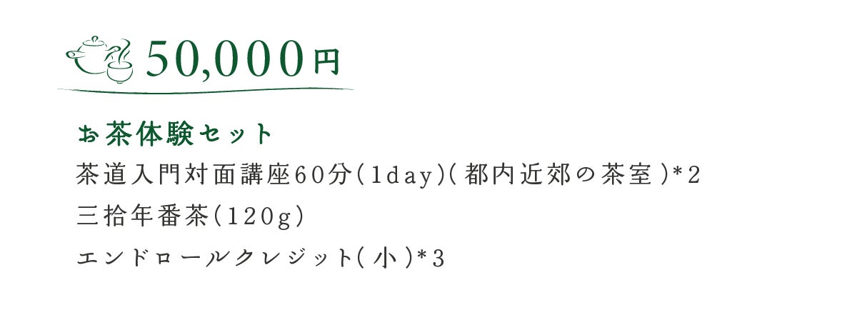 ※2:2025年9月1日(月)〜2026年7月31日(金)までの間に都内近郊にて毎月開催される茶会のいずれか一回に参加いただけます。具体的な日程については、支援者さまとメールでご相談の上決定させていただきます。