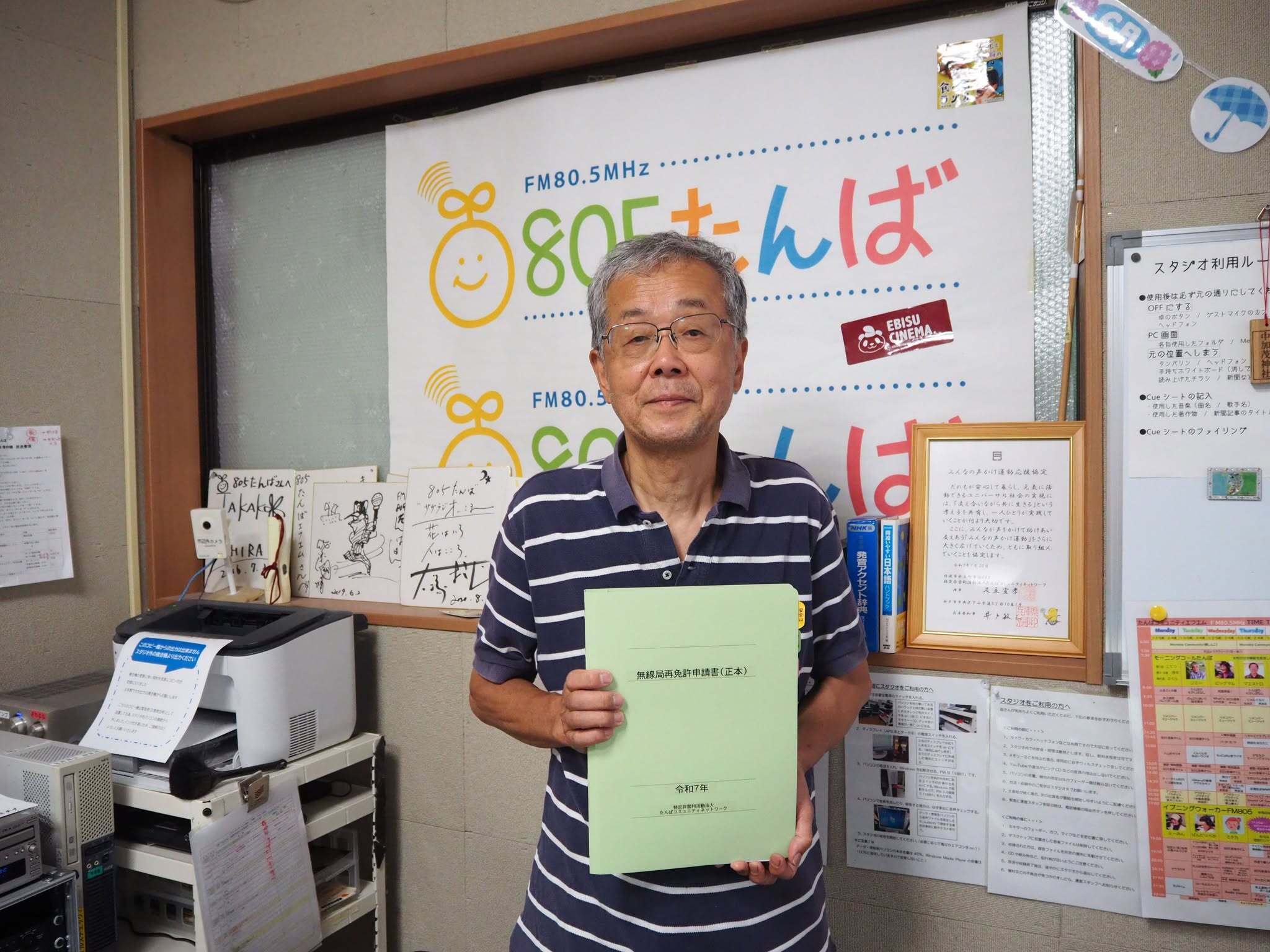 5年に1度の放送局の再免許更新の申請書を「総務省近畿総合通信局」へ提出しました!今回作成した書類は176ページ。3月からスタートし3回の局内書類審査会を経て本提出にいたっています。 これから総務省で書類の審査が行われ問題がなければ10月下旬に次の5年の無線局免許状が交付されます。