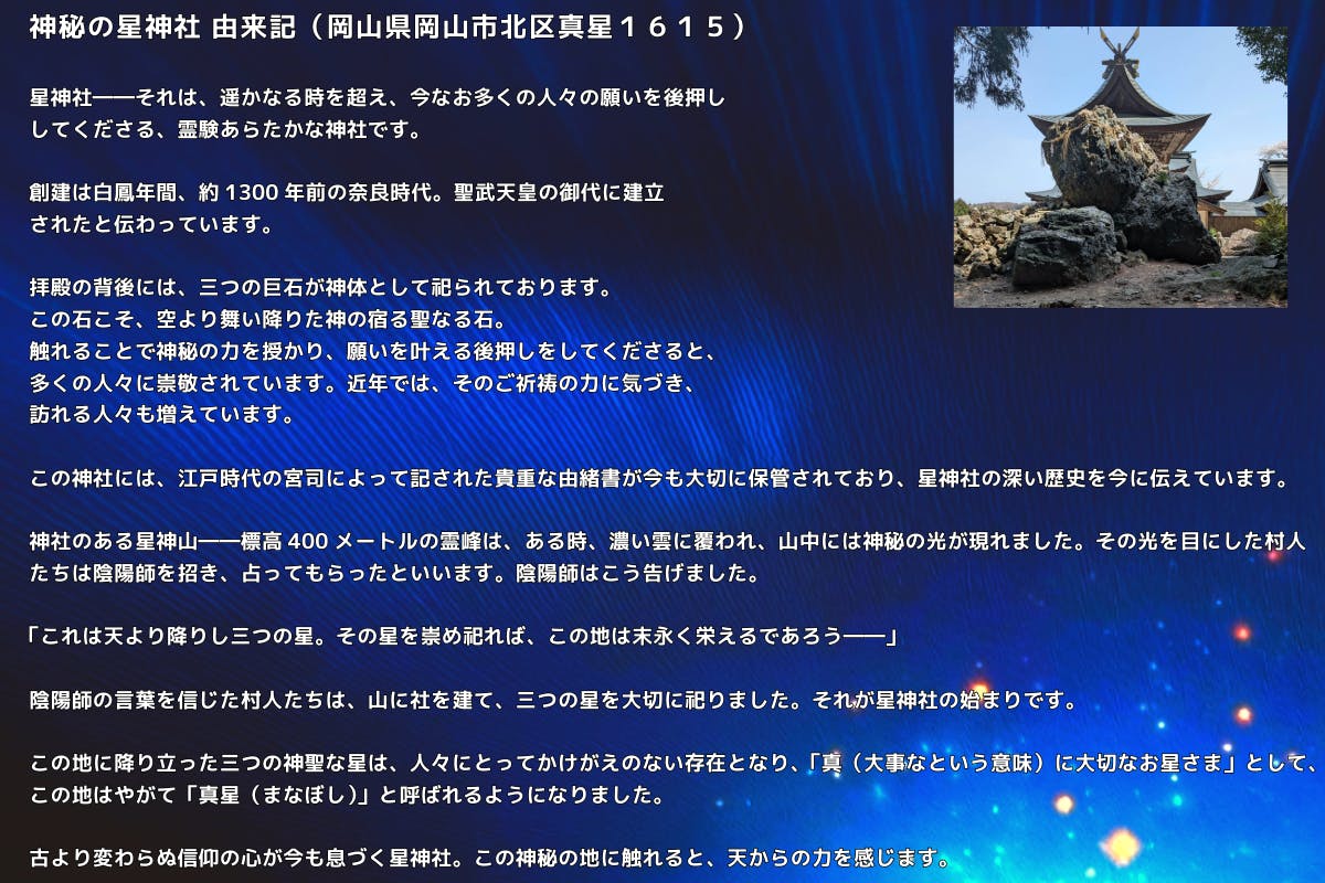 そんな情に厚く、行動力のある方です。今回、星神社の神主さんからの