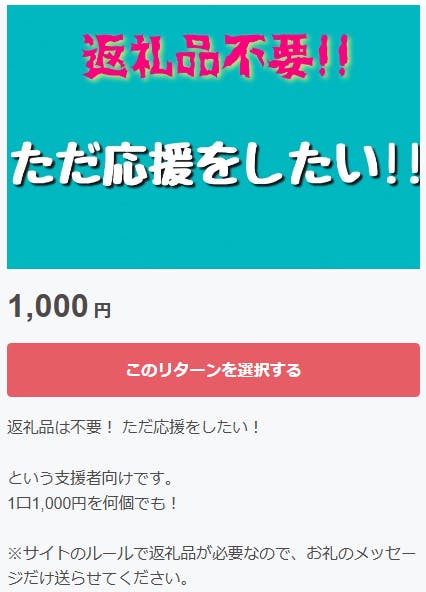 いくつか提案をいただきました「返礼品いらないけど応援したい!!」というリターンを追加いたしました!!