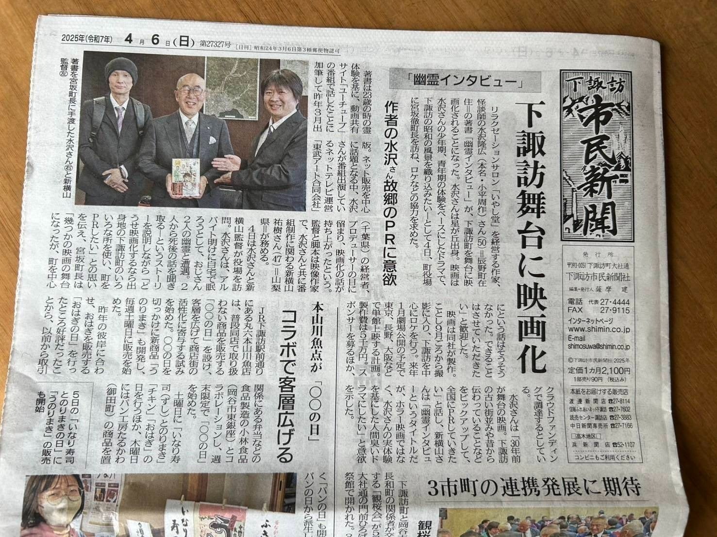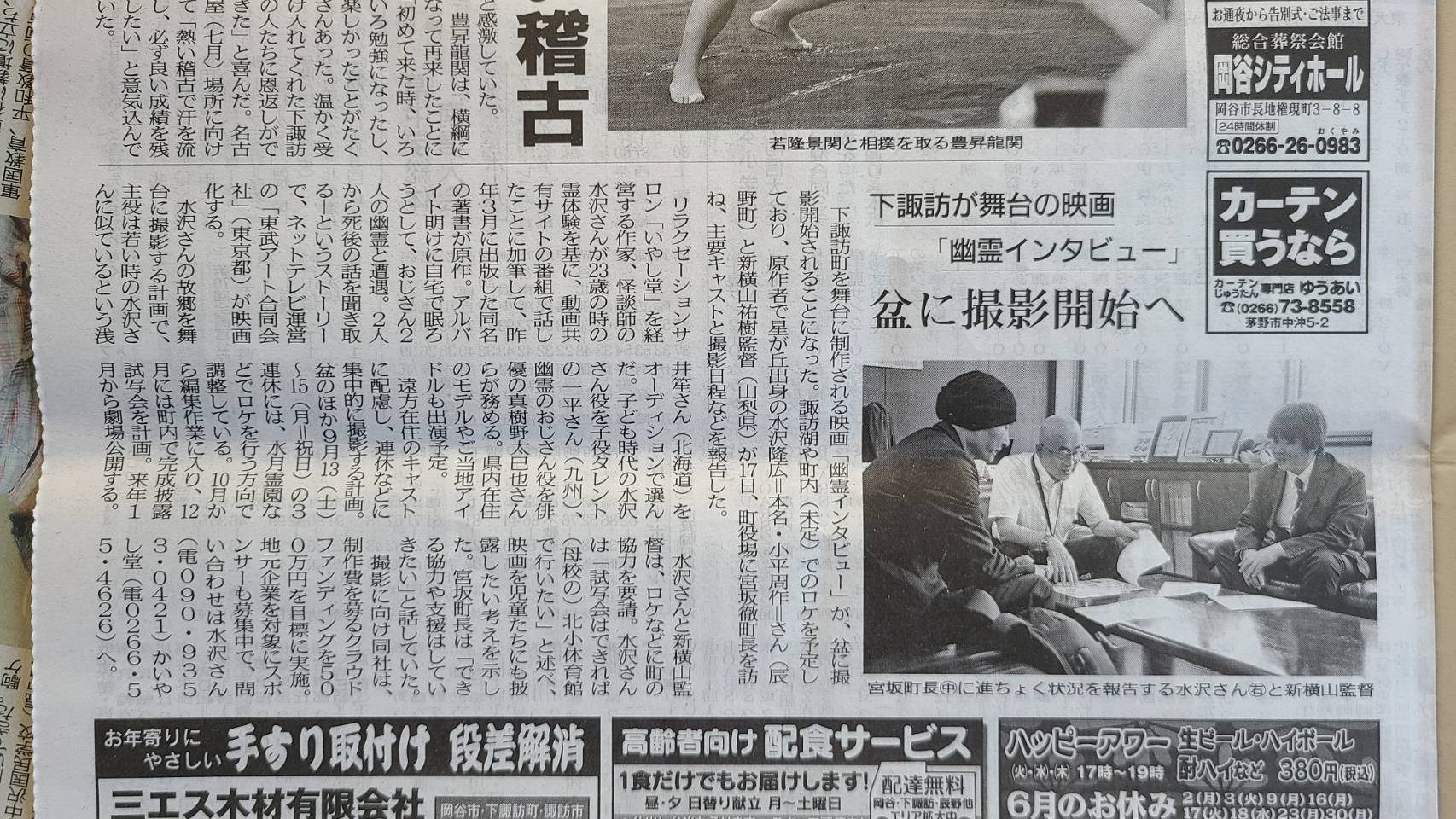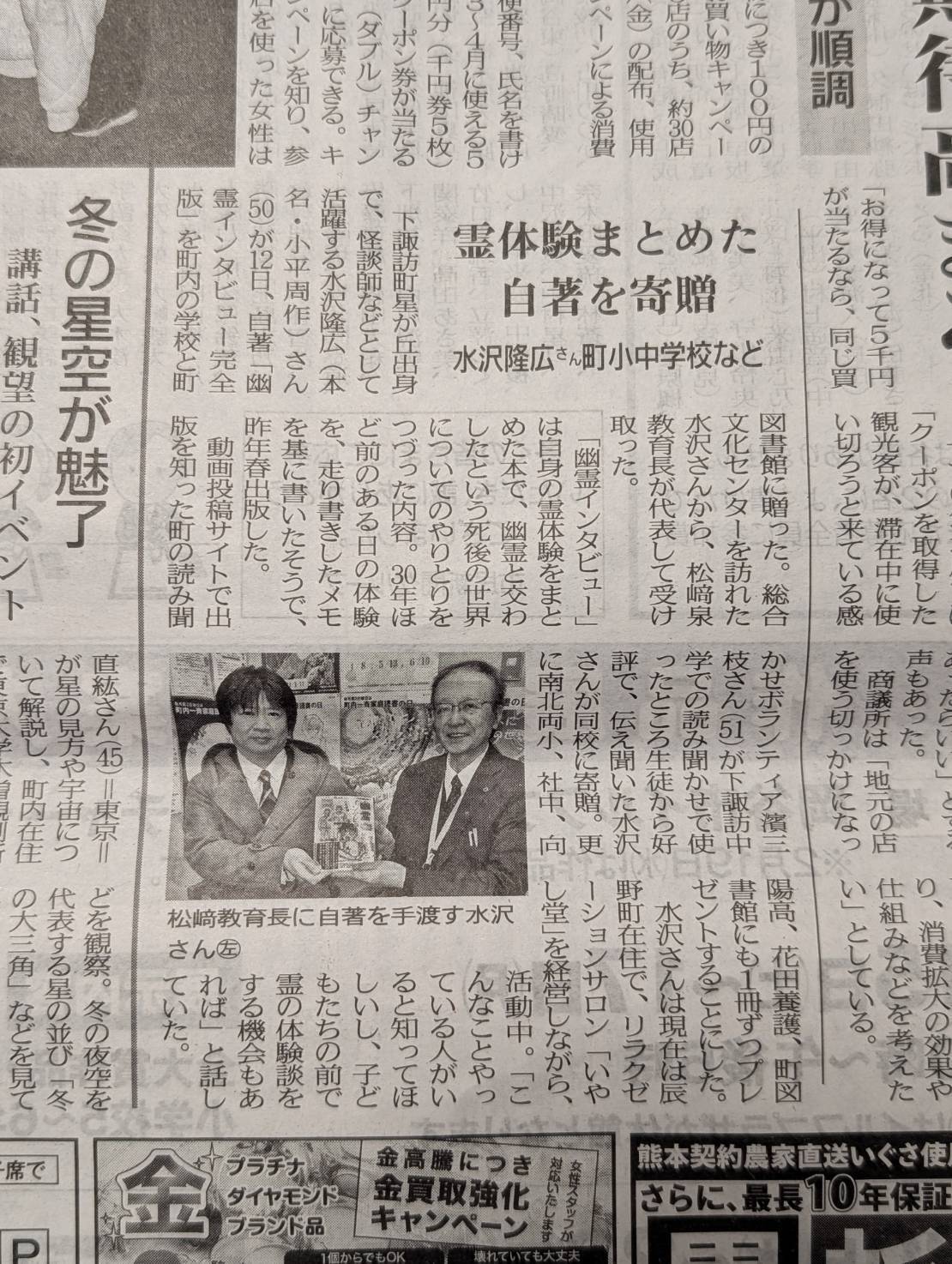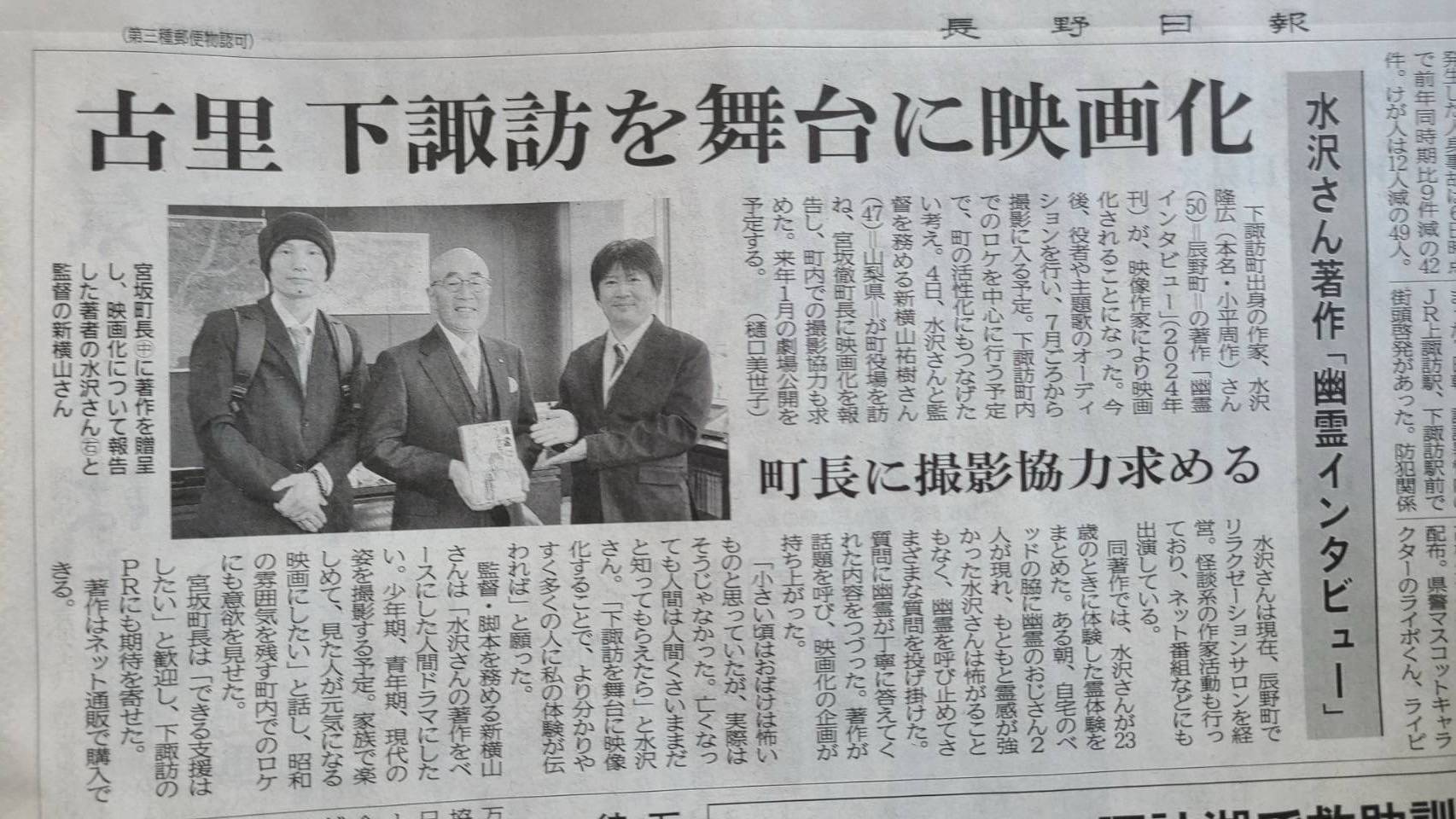 そして書籍「幽霊インタビュー」を町内全ての教育の場に置いてくださっている下諏訪町への感謝、原作者水沢隆広の故郷である長野県、地元への恩返しという気持ちです。