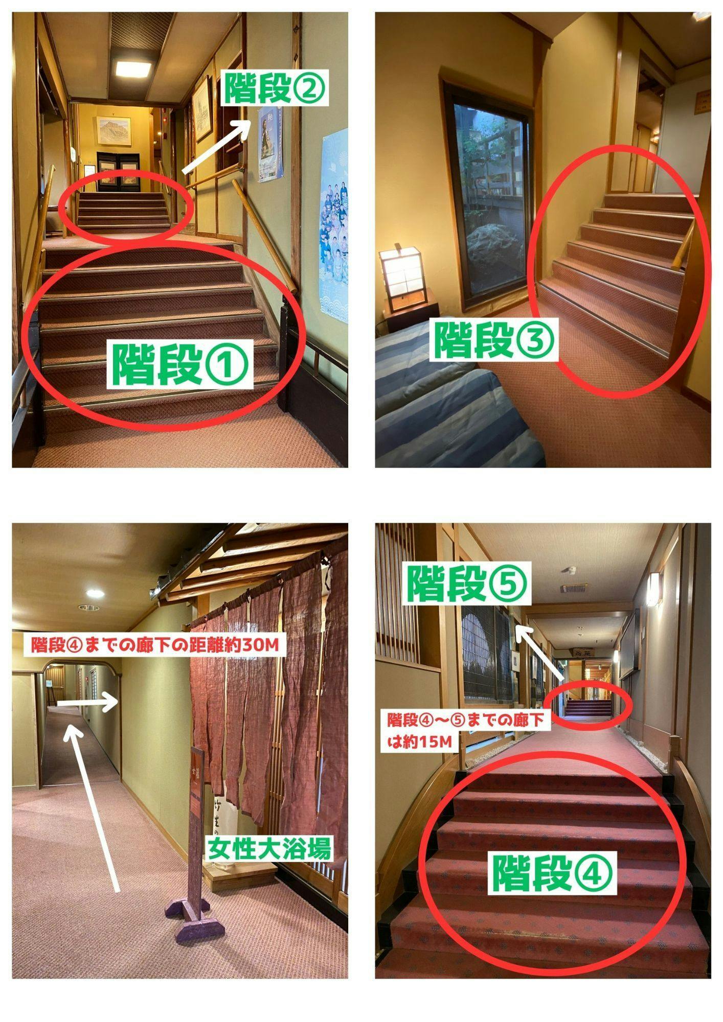 「どうしても高島屋に泊まらせてあげたい」「温泉に入れてあげたい」と、お母様をおぶってこの階段を上り下りされたお客様もいらっしゃいました。
