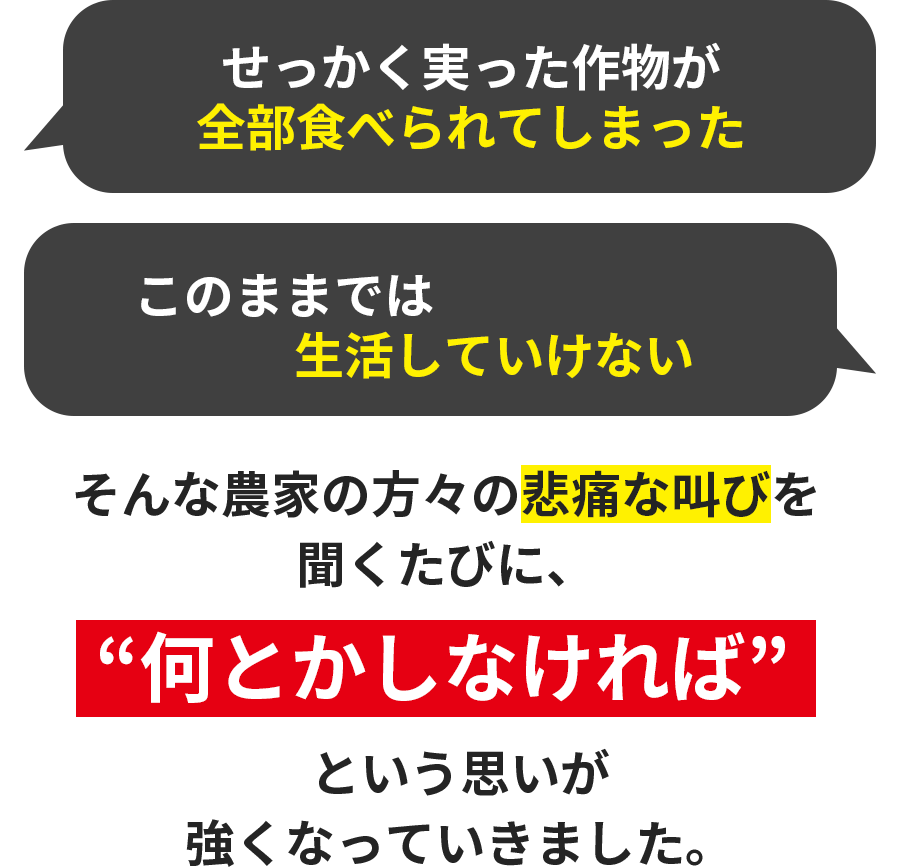 農家の方が一生懸命育ててきた農作物、個人の方が愛情を込めて育ててきた農作物、そのどれもが被害に遭ってほしくない。