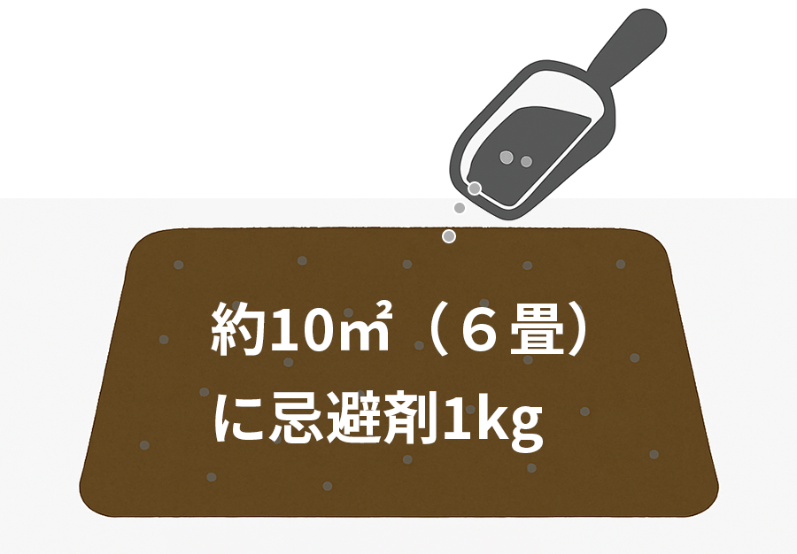 A. 一般的な畑であれば、約10平米(6畳)あたり1kg、が目安となります。被害の状況や対象となる動物によって調整してください。