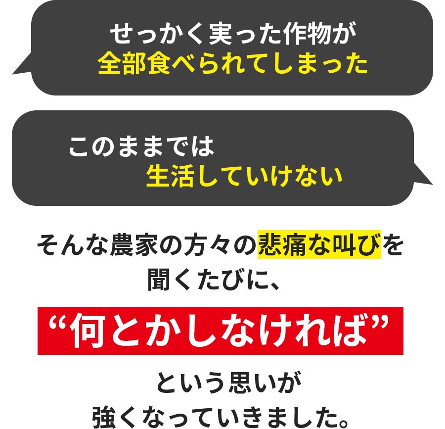 農家の方が一生懸命育ててきた農作物、個人の方が愛情を込めて育ててきた農作物、そのどれもが被害に遭ってほしくない。
