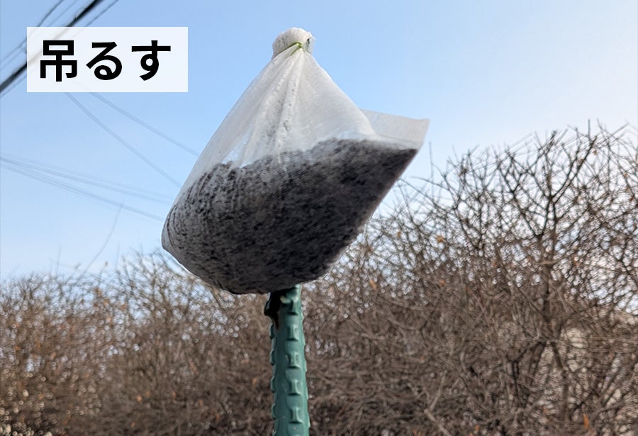 麻袋や不織布に入れた忌避剤をフェンスや庭先に吊るすことも可能です。