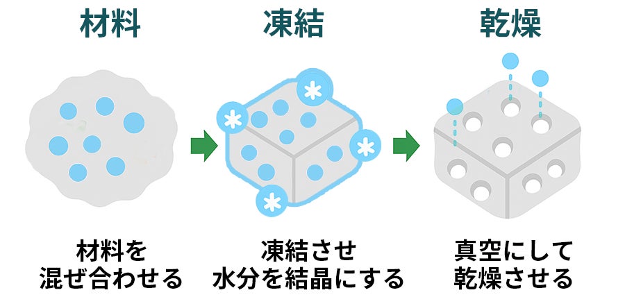 従来の天然忌避剤は自然乾燥方式が主流で、強烈な臭いが使用時の大きな障壁でした。本製品は食品加工の技術を応用したフリーズドライ製法を採用しています。