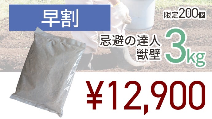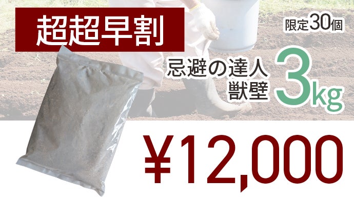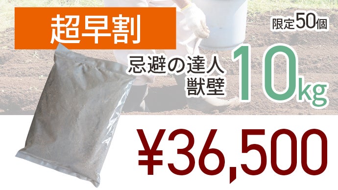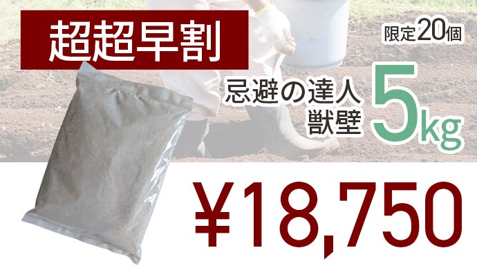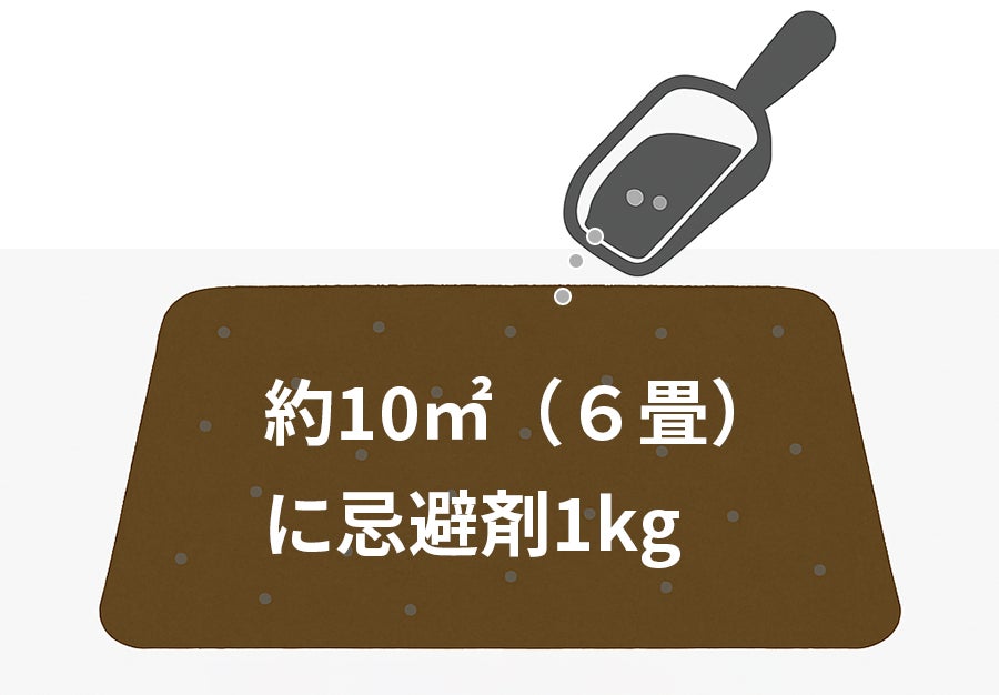 A. 一般的な畑であれば、約10平米(6畳)あたり1kg、が目安となります。被害の状況や対象となる動物によって調整してください。