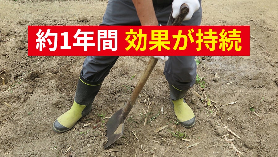 水を含むと粘土状になって土壌に浸透し、約1年もの間効果が持続。しかも植物の生育も促進する効果があることが判明したのです。